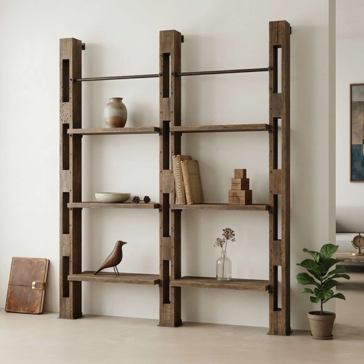 Das Besondere an diesem Regal ist seine Modularität, denn die sechs 75 cm langen und 31 cm tiefen Bretter lassen sich ganz einfach nach Belieben anbringen. Dazu müssen Sie nur die Stifte, die die Bretter halten, in ein beliebiges Loch in den Pfosten schieben. Das Bücherregal bietet somit eine optimale praktische Aufbewahrung und passt sich der Höhe der Gegenstände an, die Sie in Ihrem Zuhause zur Schau stellen möchten.