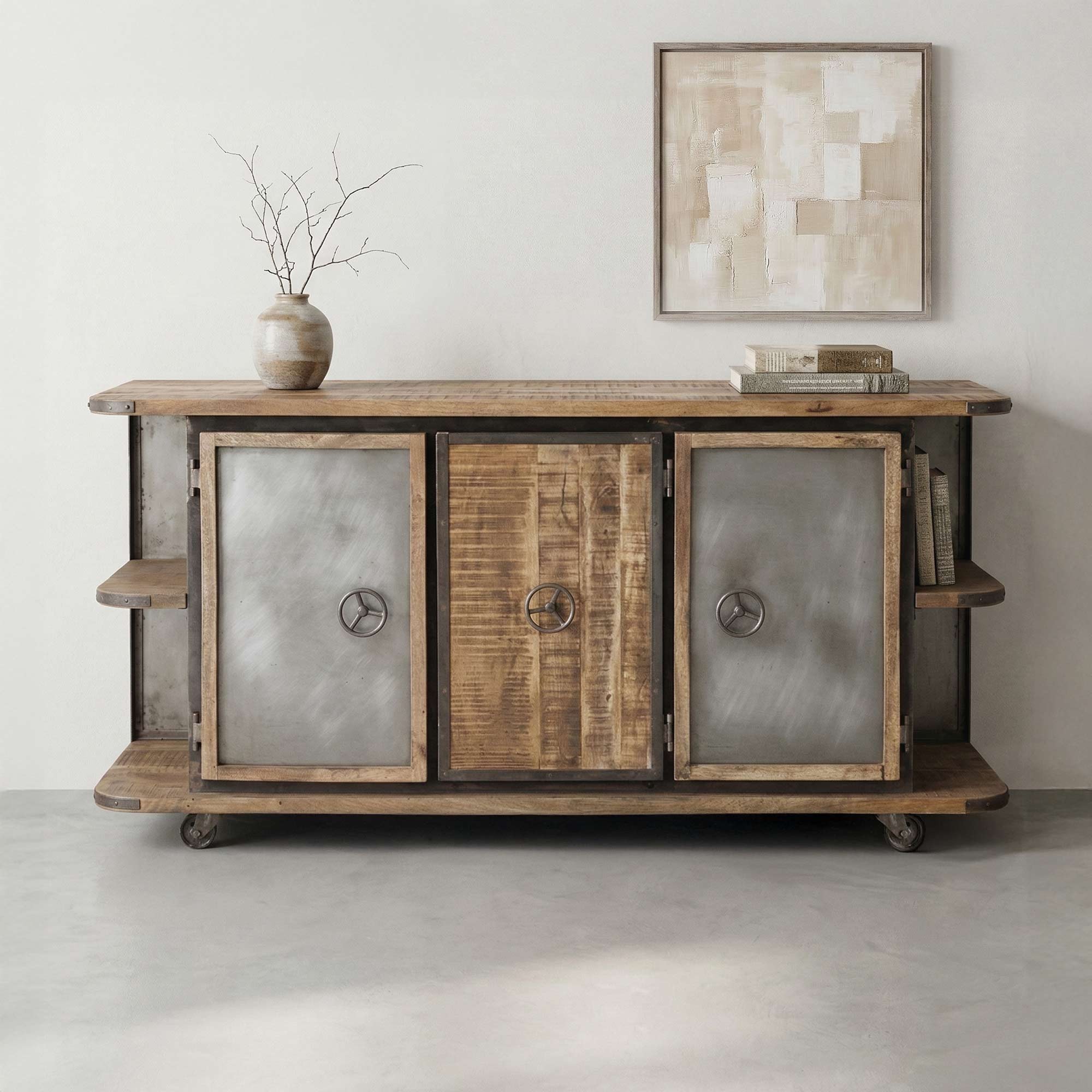 Diese Anrichte besteht aus Mangoholz und Metall in natürlicher Ausführung und wird bei Ihnen zu Hause einen Ehrenplatz finden!