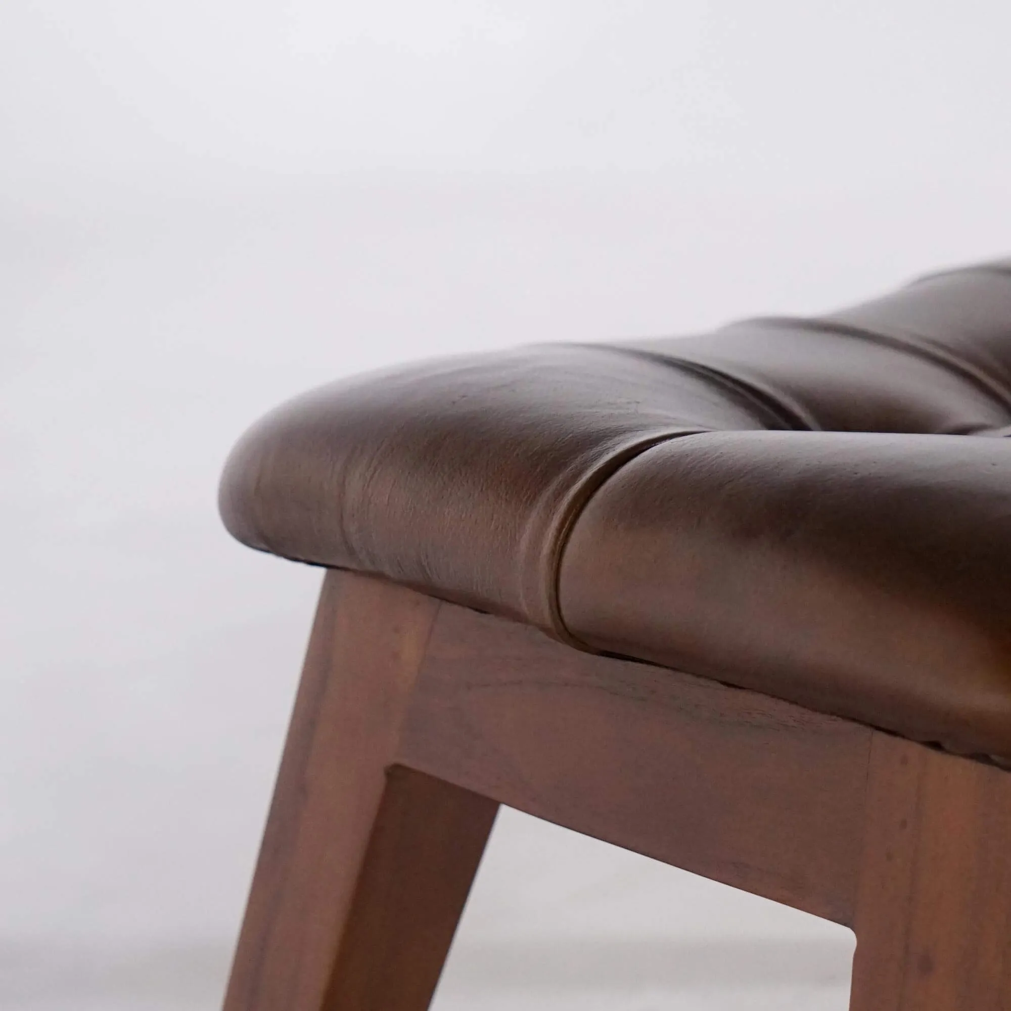 Seine größte Qualität liegt in der Qualität seiner Materialien, dem Mangoholz und dem Büffelleder. Rohe Materialien mit hoher Widerstandsfähigkeit, die Ihrem Raum einen exotischen und natürlichen Touch verleihen. Die Sitzfläche aus Leder ist fleckenabweisend behandelt und mit einem dichten Schaumstoff gepolstert, der den Komfort optimiert. Der braune Lederbezug mit seinen wunderschönen Nähten und der gesteppten Optik ist besonders detailgetreu verarbeitet. Die Beine bestehen aus natürlichem Massivholz, das mit einem Lack auf Wasserbasis behandelt wurde.