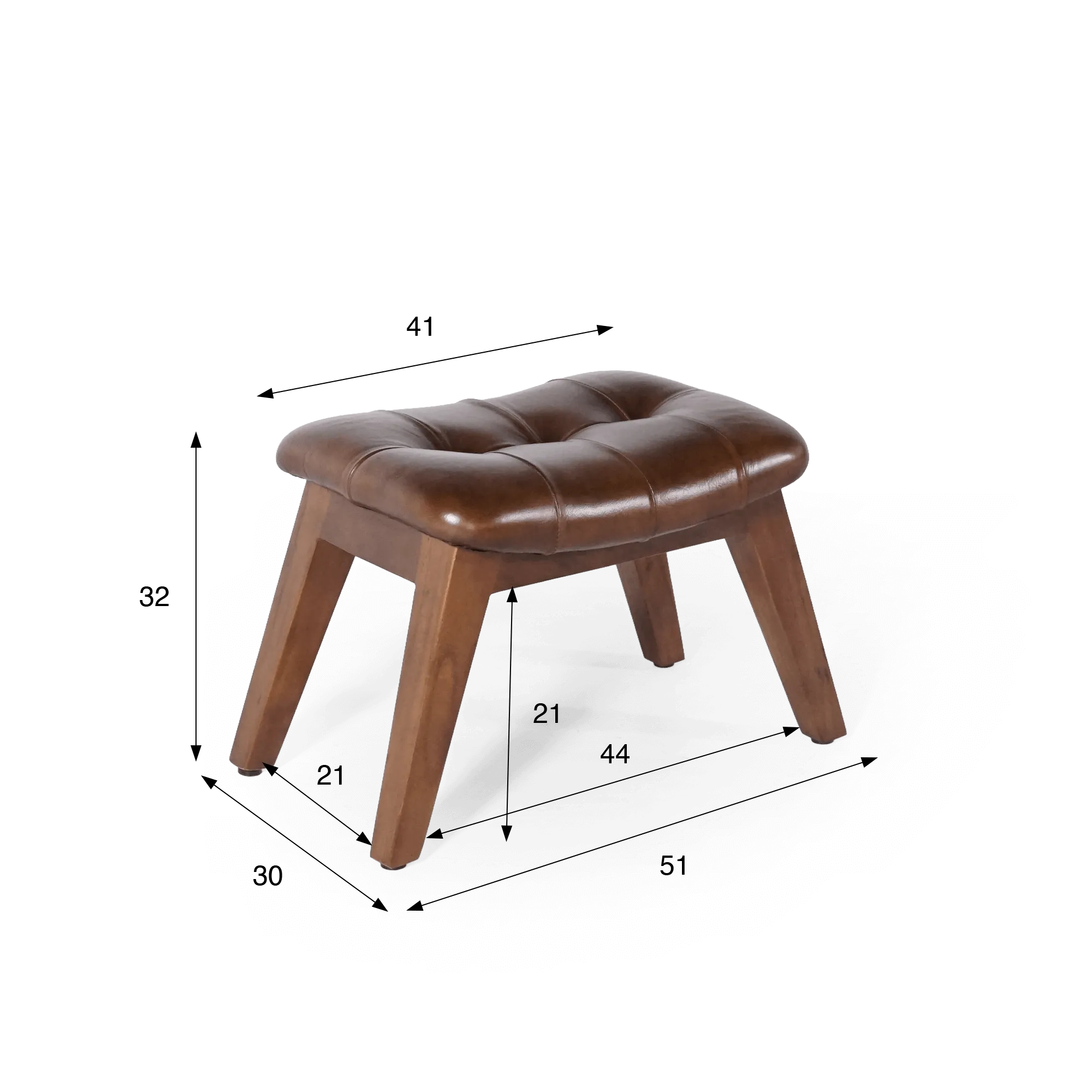 Dieser 30 cm hohe Hocker im Vintage-Stil besteht aus einem Gestell aus edlem Holz und ist mit hochwertigem Leder überzogen.