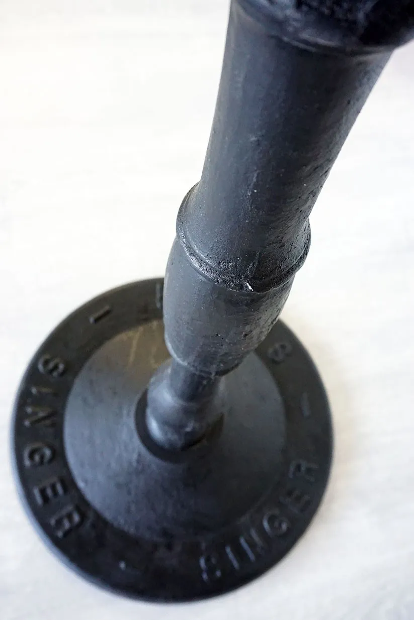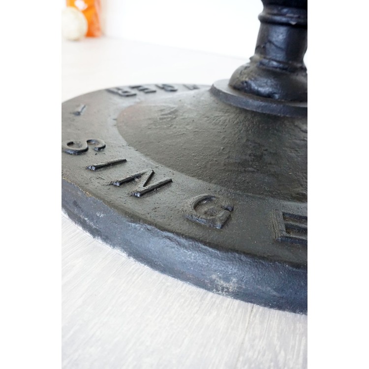Das Gestell aus Gusseisen hat eine wunderschöne schwarze Oberfläche und wird in der Mitte der Tischplatte aufgehängt, was für einen optimalen Sitzkomfort sorgt, da keine Füße im Weg sind.