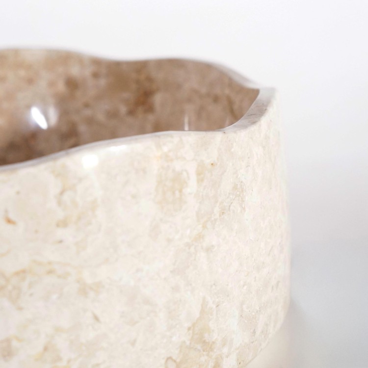 Lassen Sie sich von dem Aufsatzwaschbecken aus Naturstein Flower verzaubern – ein mit höchster Präzision aus beigem Marmor gemeißeltes Stück. Dieses blumenförmige Aufsatzwaschbecken verleiht Ihrem Badezimmer eine künstlerische und elegante Note und vereint Funktionalität mit Ästhetik.