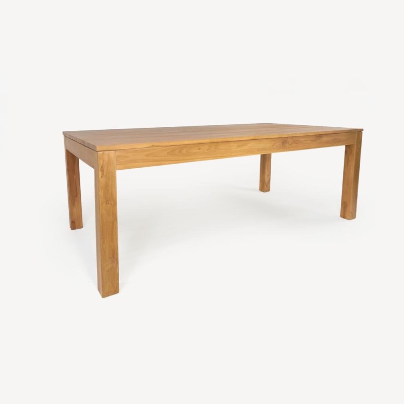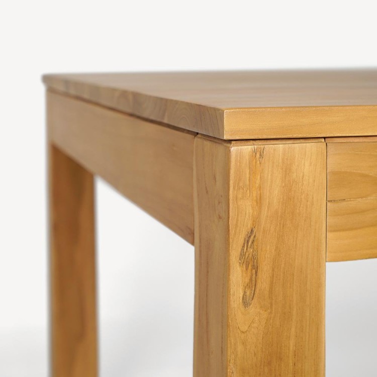 Imposant und elegant, dieser Esstisch aus Massivholz aus der Ayu-Kollektion ist ein Meisterstück, das Schlichtheit und Raffinesse vereint. Die rechteckige Tischplatte mit ihren klaren Linien und das solide Gestell zeugen von einem Design, das auf Langlebigkeit ausgelegt ist und gleichzeitig eine zeitgemäße Ästhetik bietet. Die natürliche Schönheit des Teakholzes zeigt sich in jeder Holzmaserung und bringt Wärme und Authentizität in Ihr Zuhause.