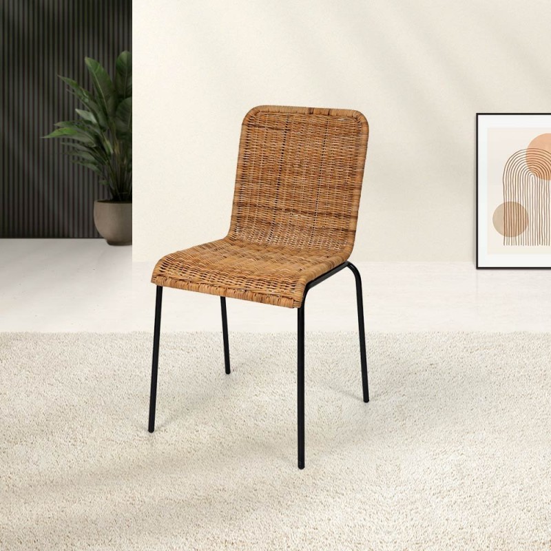 Stuhl aus natürlichem Rattan mit schwarzen Metallbeinen - Ananda