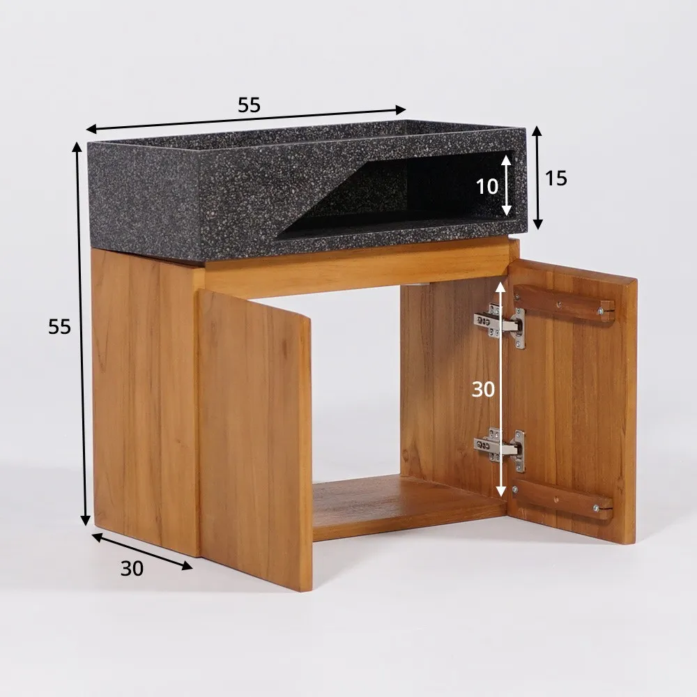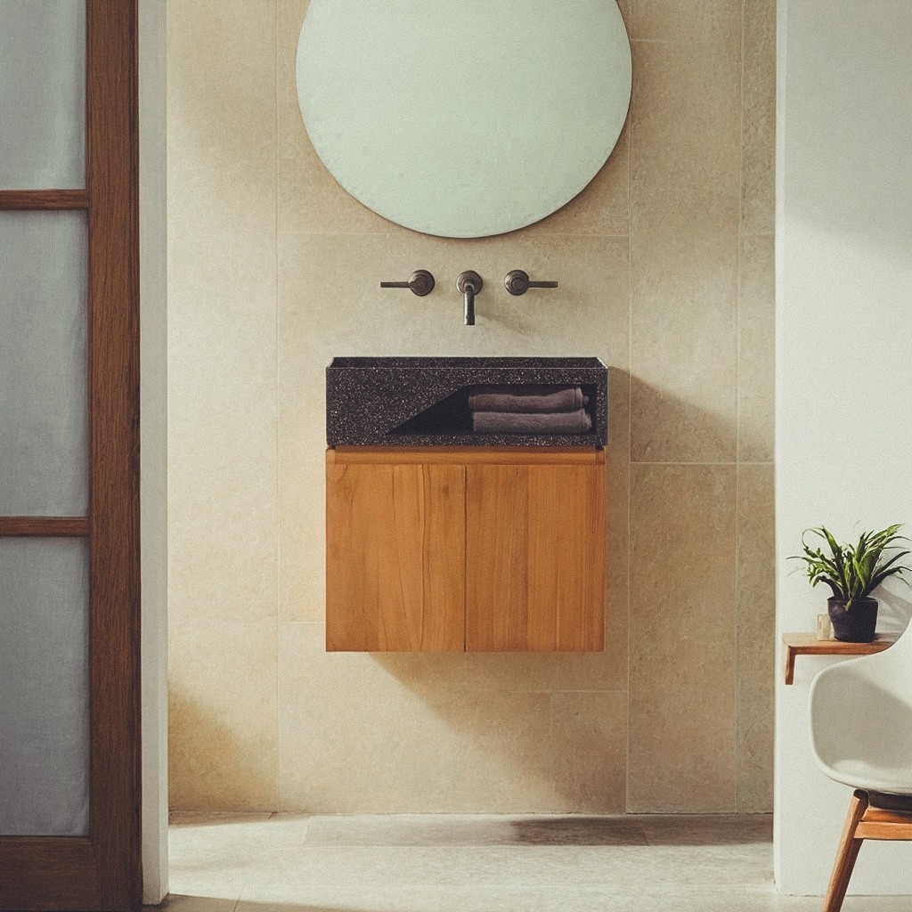 Hängendes Handwaschbecken aus massivem Teakholz und schwarzem Terrazzowaschbecken - Tanja