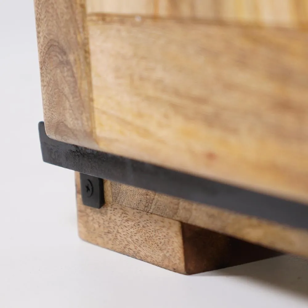 Als Designer haben wir großen Wert darauf gelegt, die natürlichen Qualitäten des Mangoholzes hervorzuheben, seine einzigartige Maserung zu erhalten und es mit der Robustheit von Metall zu kombinieren. Dieses Möbelstück verkörpert über seinen Nutzen hinaus unsere Leidenschaft für nachhaltiges und authentisches Design.