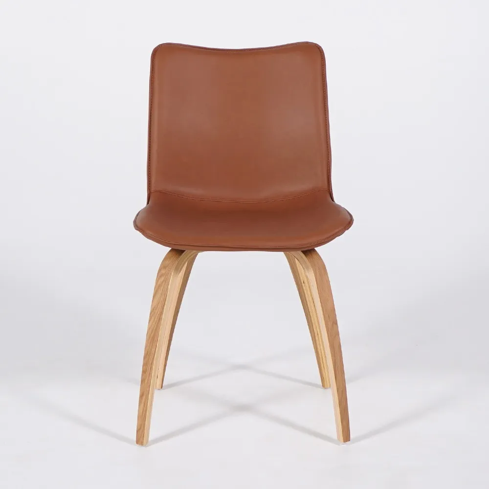 Entdecken Sie die zeitlose Eleganz des Esszimmerstuhls Glee, einer Kreation, bei der modernes Design mit der Wärme von natürlichem Holz kombiniert wird. Dieser sorgfältig entworfene Lederstuhl vereint einen auffallend weichen, braunen Kunstlederbezug mit sanft geschwungenen Beinen aus massiver Eiche und schafft so ein perfektes Gleichgewicht zwischen Modernität und Authentizität.