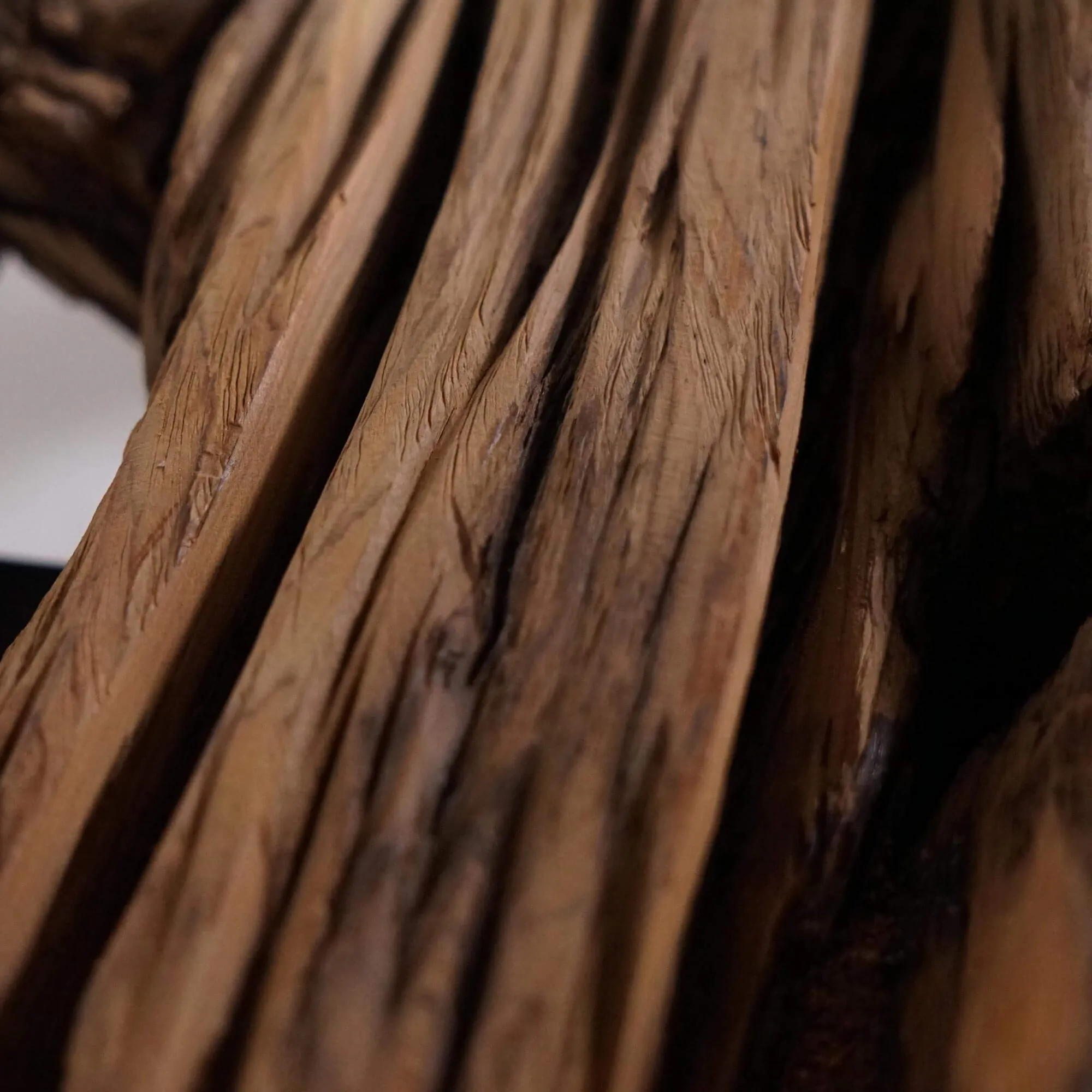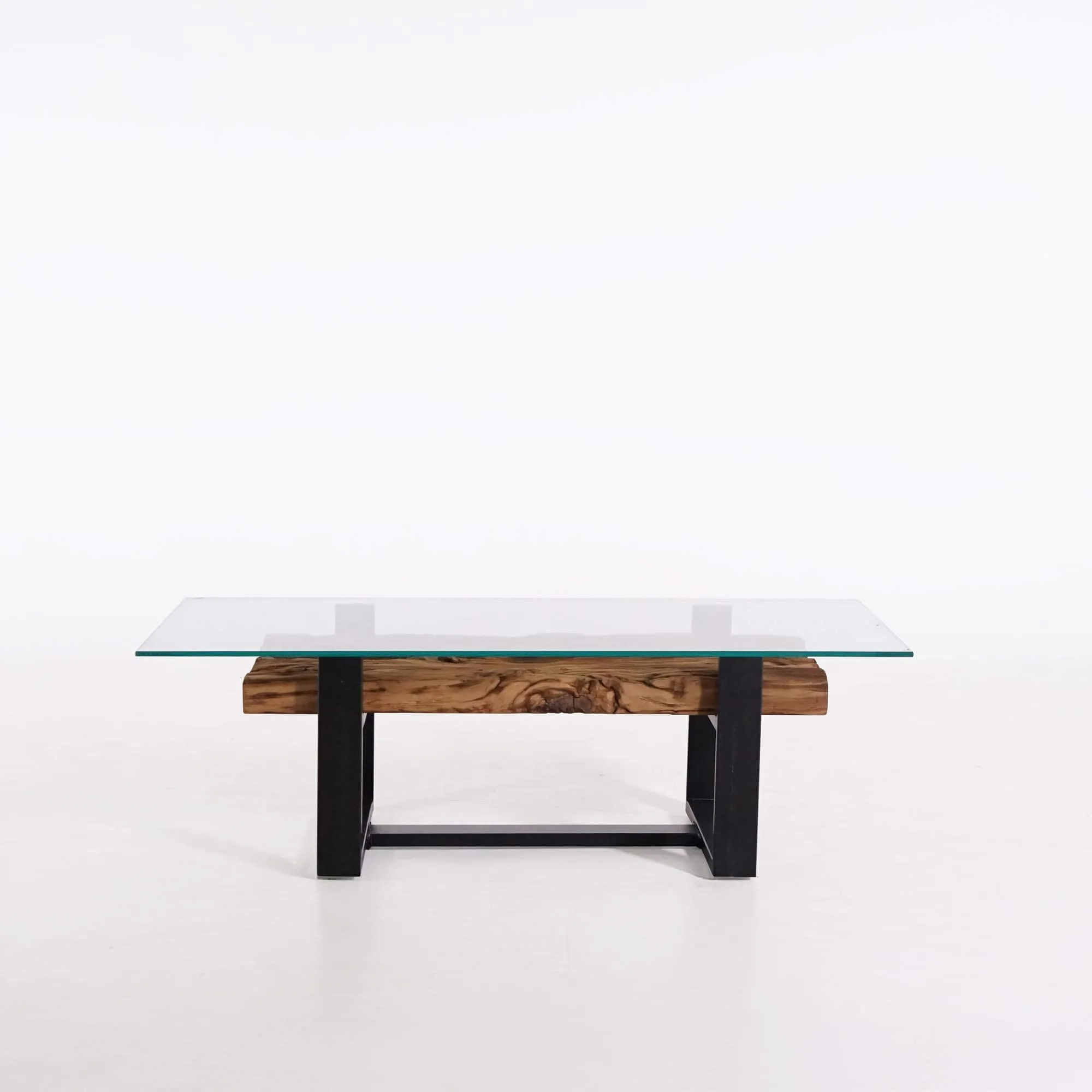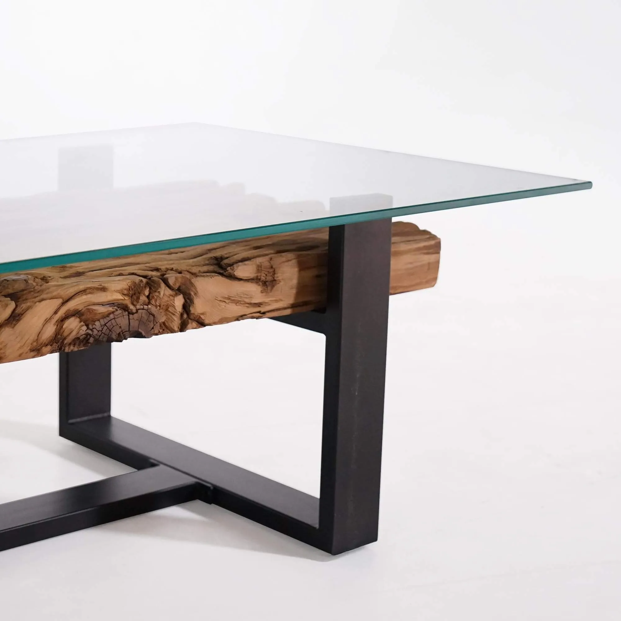 Jeder Couchtisch aus Glas und Eisenbahnschwellen Railwood wird von Hand gefertigt aus recyceltem Massivholz, das aus sorgfältig ausgewählten alten Schwellen und Konstruktionen stammt, die wegen ihrer Patina und ihres Charakters ausgewählt wurden. Die natürlichen Unregelmäßigkeiten des Holzes – seine Vertiefungen, Risse und zeitbedingten Nuancen – erzählen eine einzigartige Geschichte: die der Materie in ihrem ursprünglichsten Zustand. Wir wollten diese Seele bewahren und sie durch schlichte, sorgfältige Oberflächenveredelungen hervorheben.