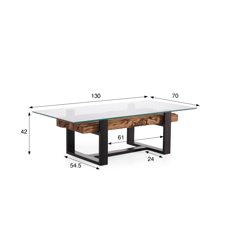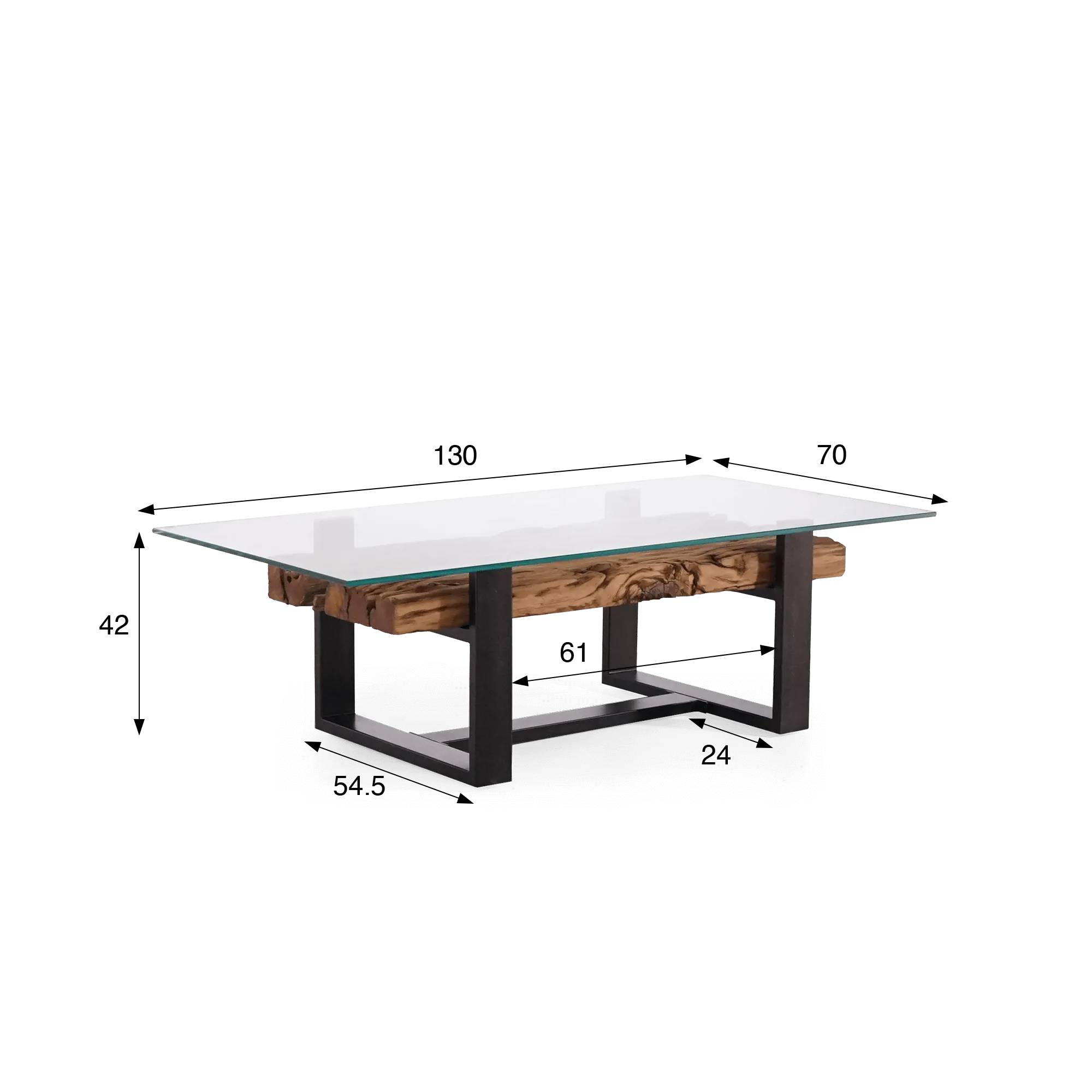 Mit ihren großzügigen Proportionen eignet sich die Railwood-Couchtisch mit Glasplatte und Eisenbahnschwellen perfekt, um den Wohnbereich zu strukturieren. Sie vereint Funktionalität und Ästhetik: Die Glasplatte bietet eine stabile und widerstandsfähige Oberfläche – ideal zum Präsentieren von Büchern, Dekorationsobjekten oder Serviertabletts. Die Montage ist einfach, und die Langlebigkeit ist garantiert – ganz im Sinne der handwerklichen Philosophie unseres Hauses.