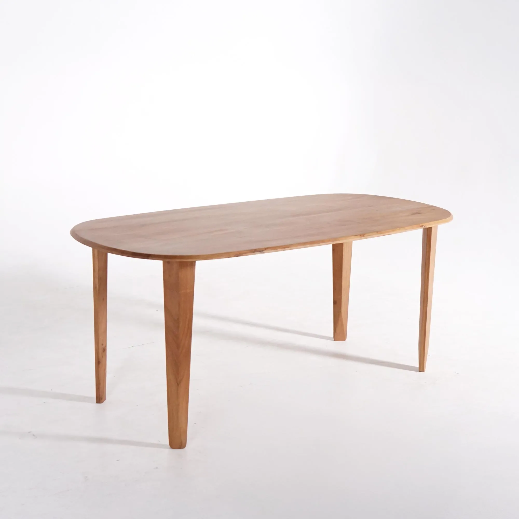 Gefertigt aus massivem Mangoholz, besticht der ovale Esstisch Orama durch seine ovale Tischplatte von 180 cm auf 90 cm mit sanft abgerundeten Kanten und seidiger Oberfläche. Die natürliche Maserung des Mangoholzes, seine warmen Farbtöne und feinen Unregelmäßigkeiten verleihen jedem Stück einen authentischen und lebendigen Charakter. Die leicht geneigten, konisch zulaufenden Beine verlängern die Linie der Platte mit natürlicher Eleganz und sorgen für Stabilität und Raffinesse.