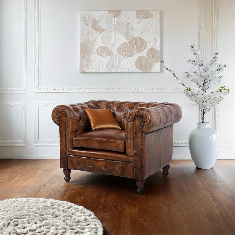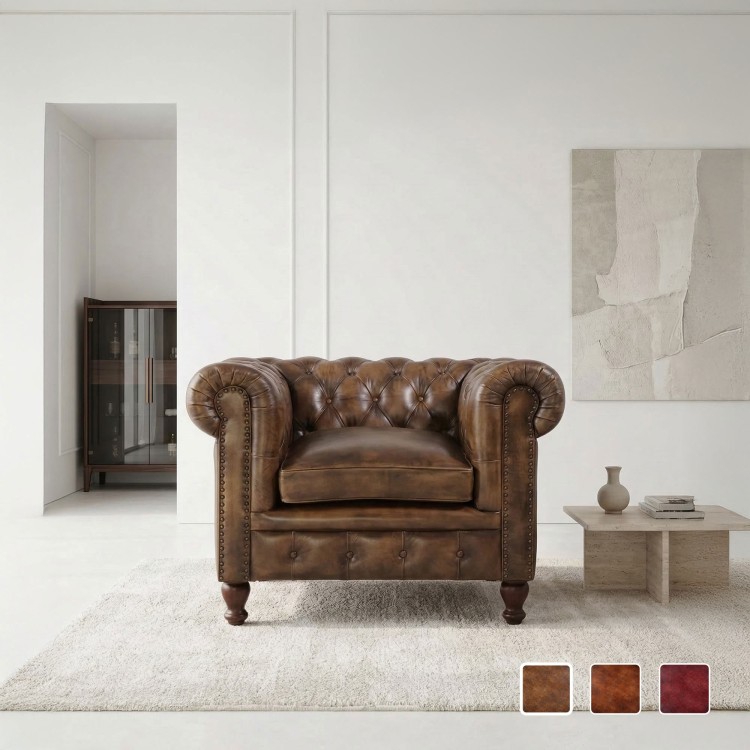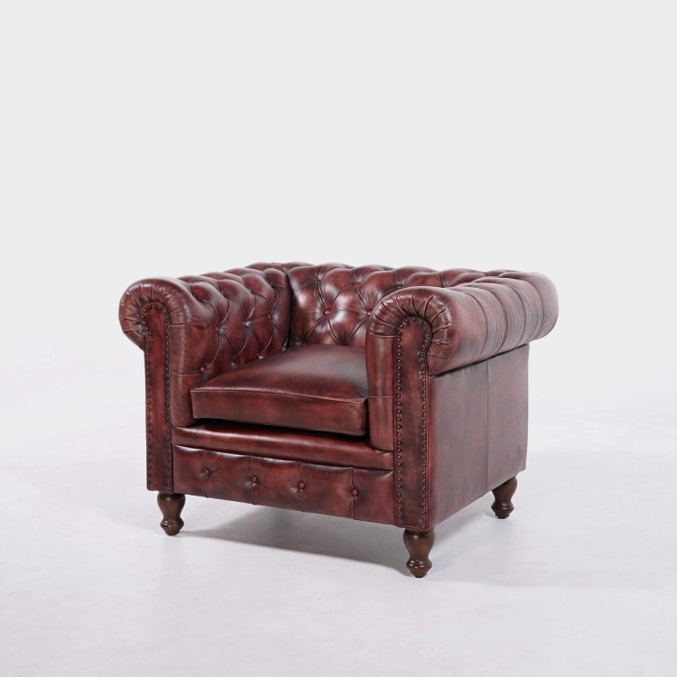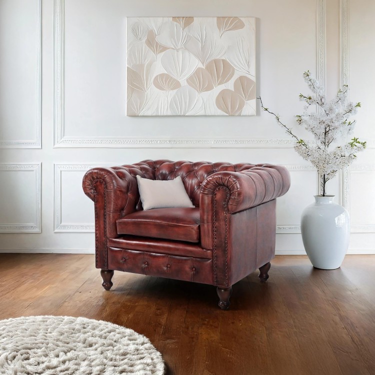 Chesterfield-Sessel aus echtem Leder – Edward