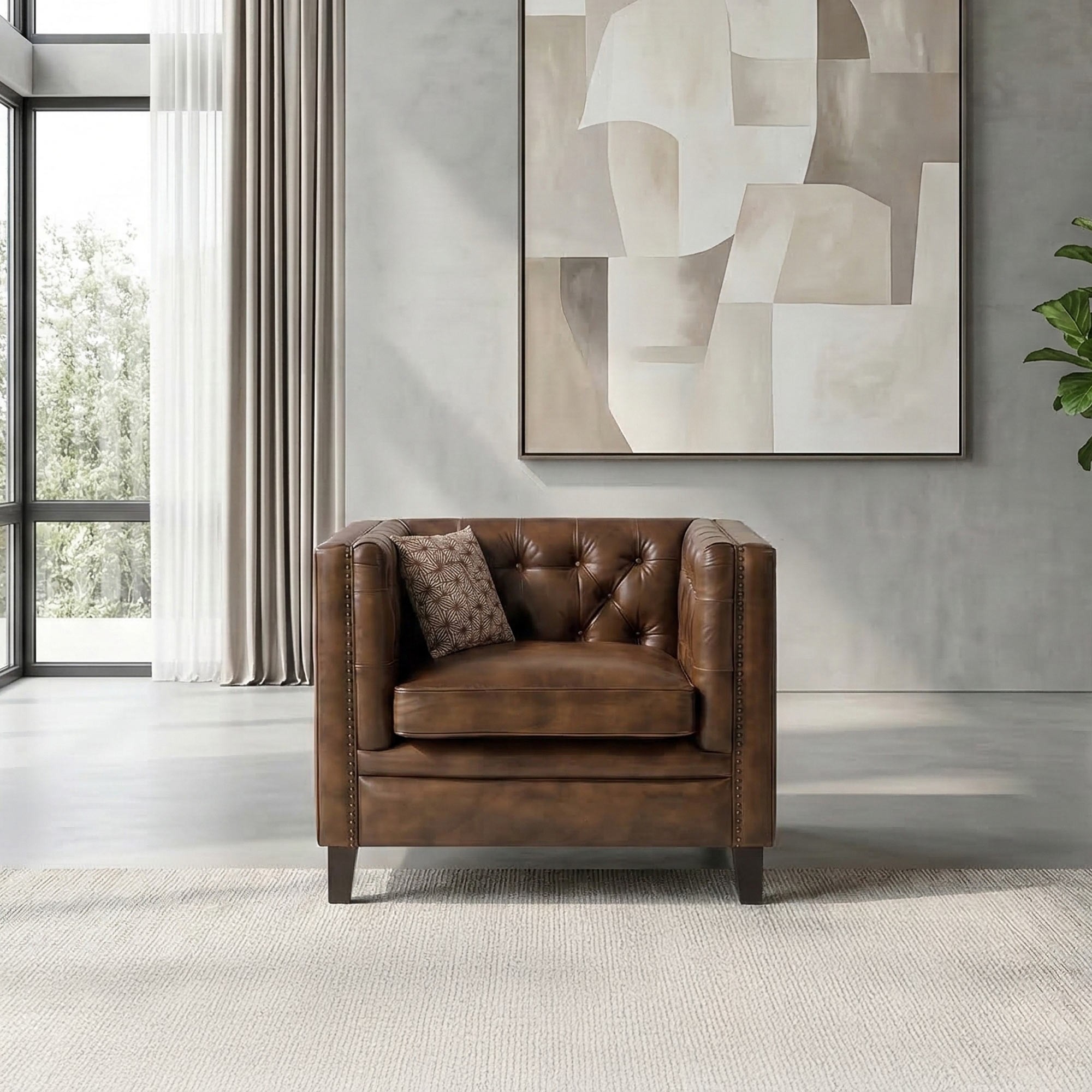 Braunes Chesterfield-Sessel aus Büffelleder – Charles