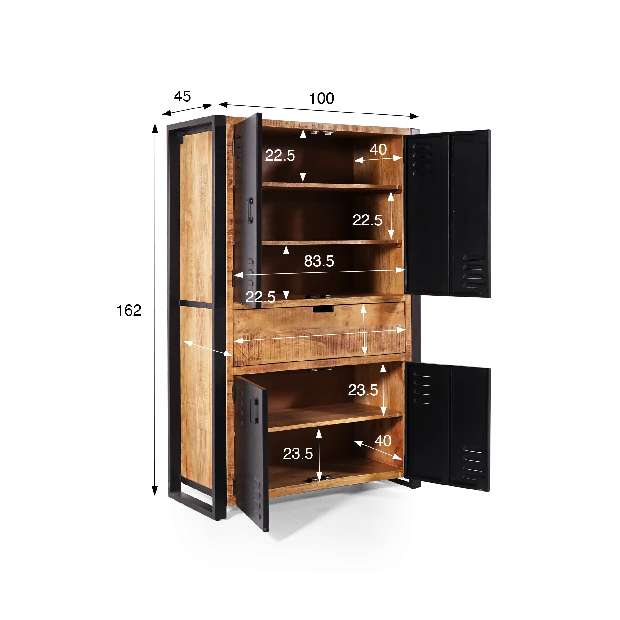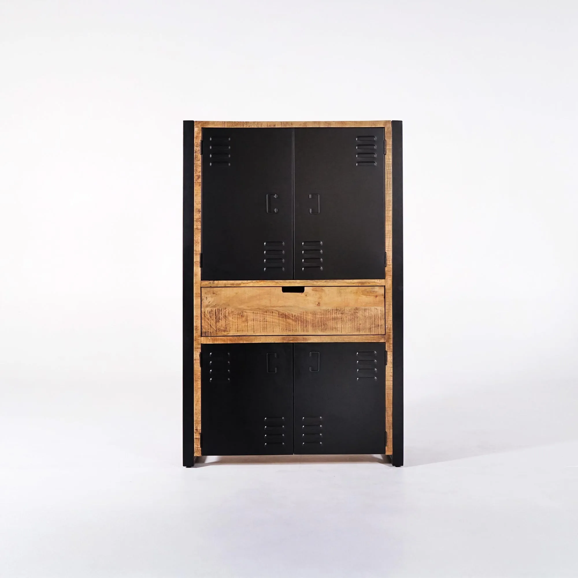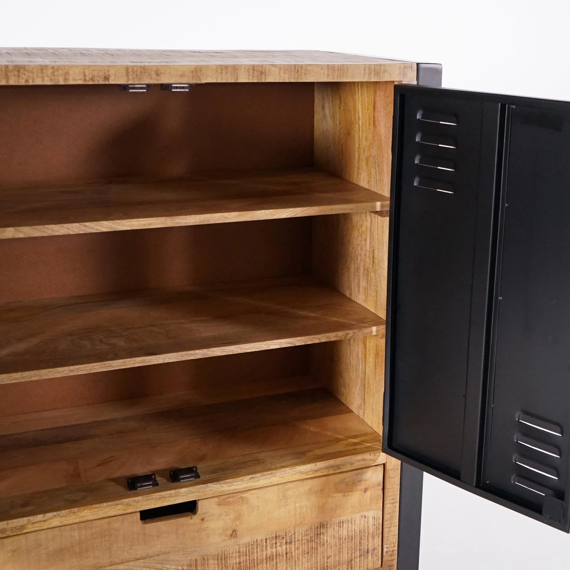 Kansas Schrank aus massivem Mangoholz mit Metalltür 100 cm – Kansas