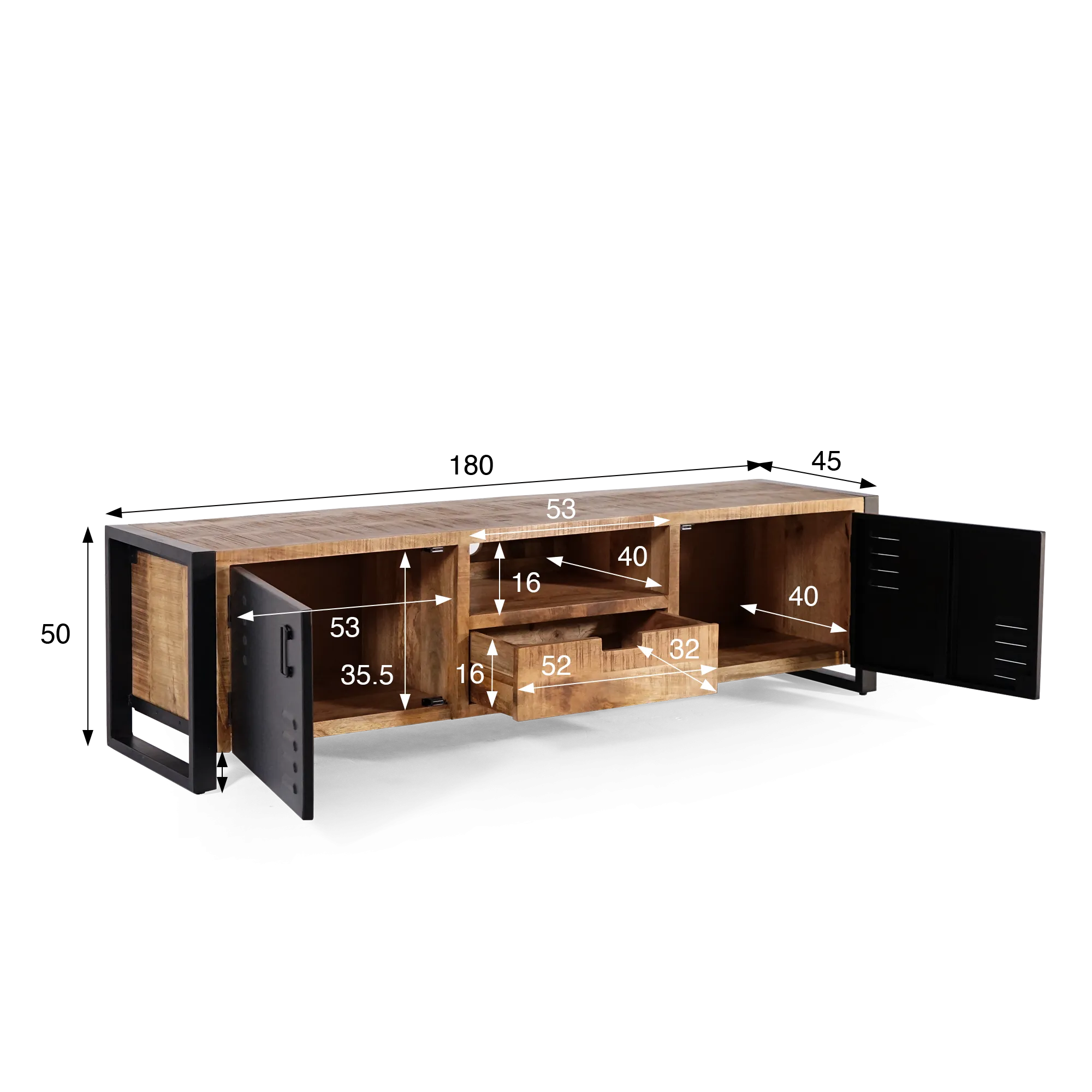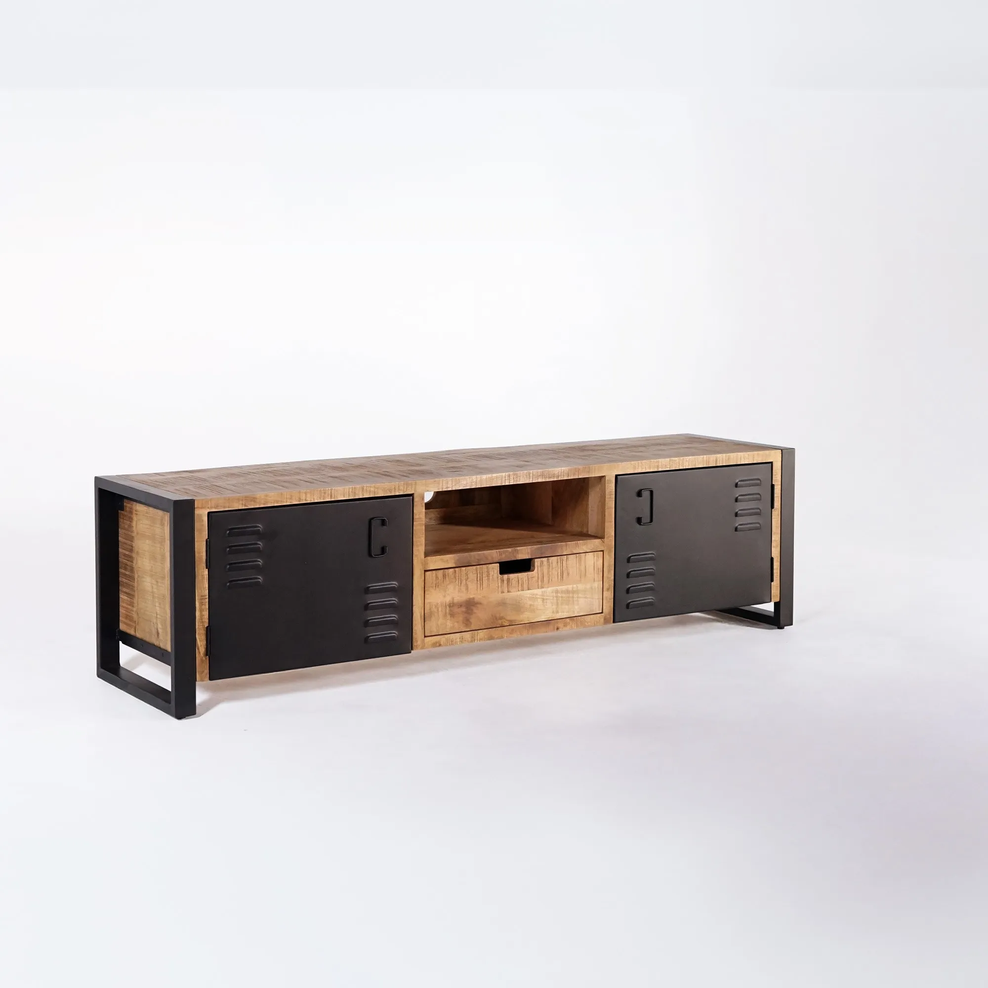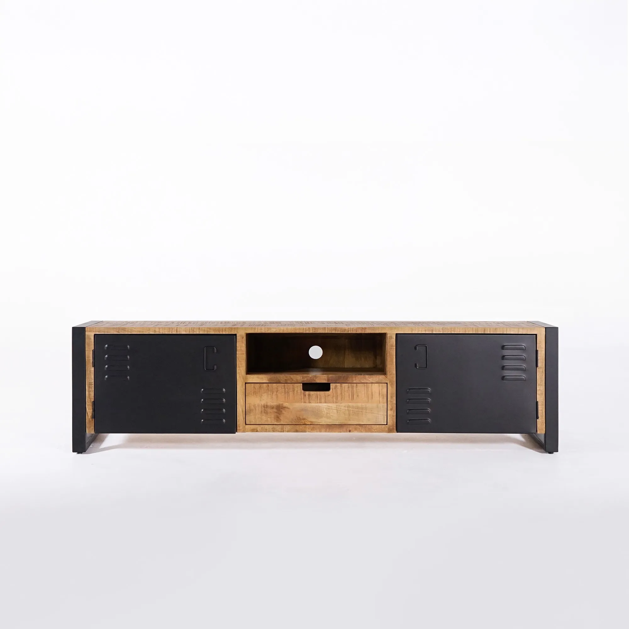 Kansas TV-Möbel aus massivem Mangoholz mit Metalltür 180 cm – Kansas