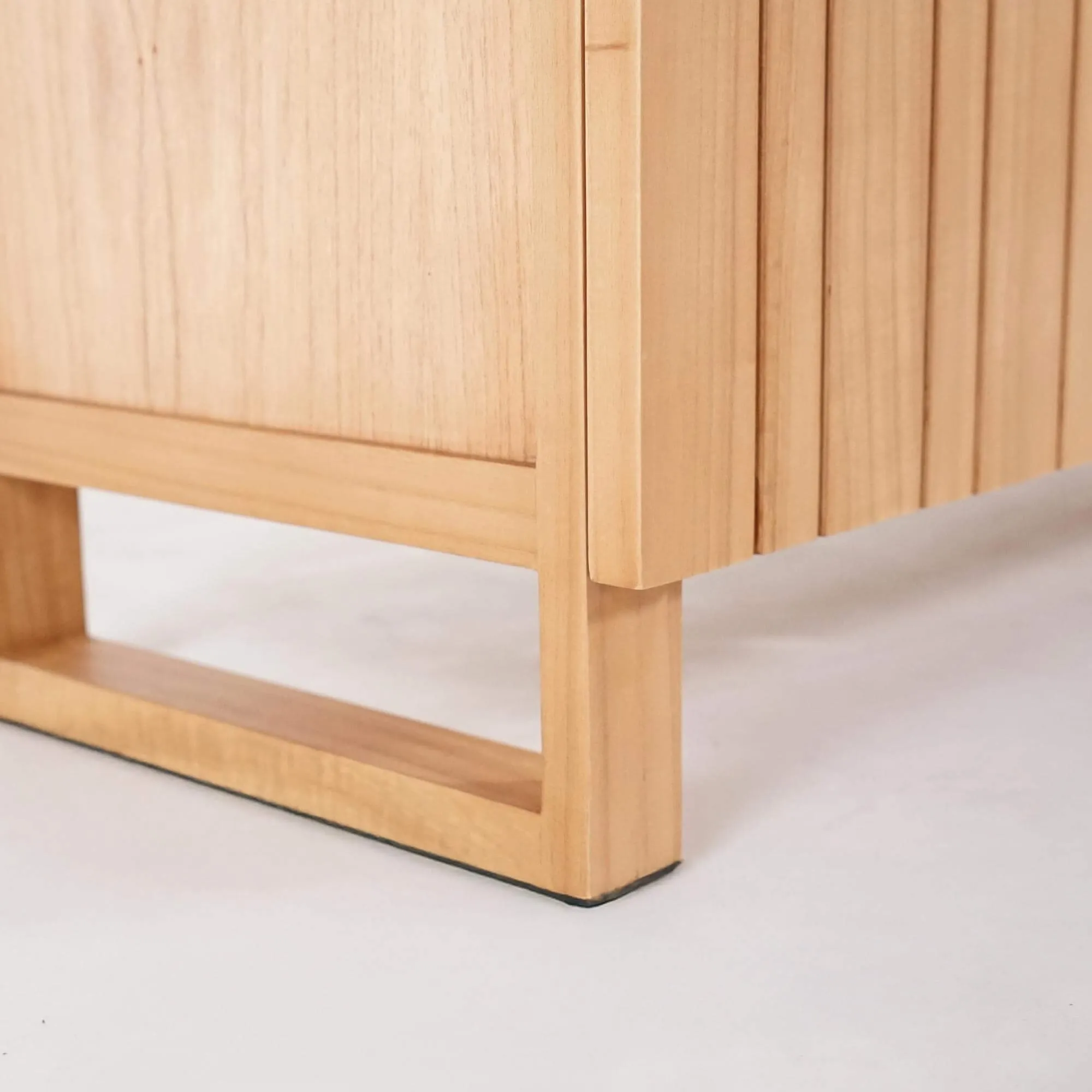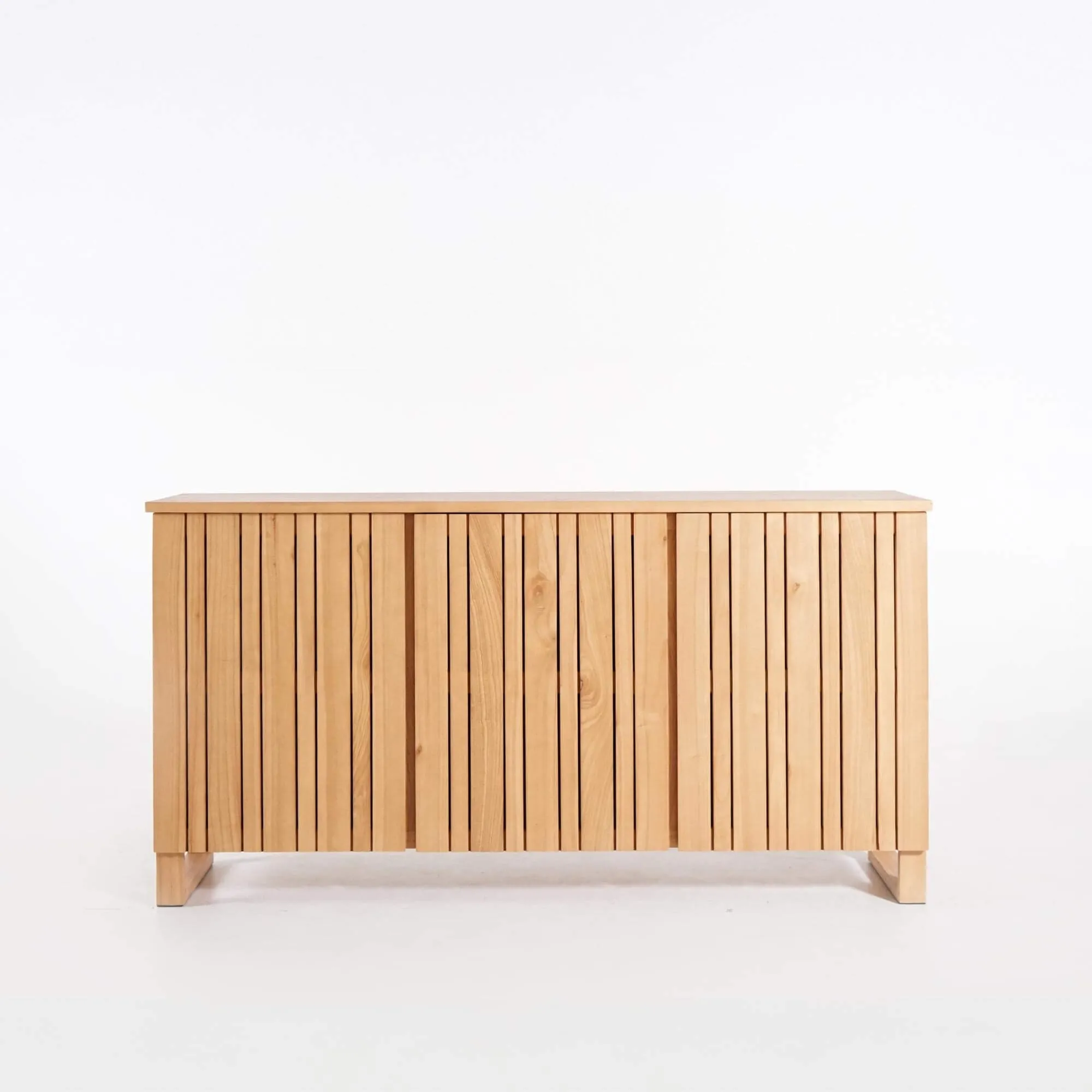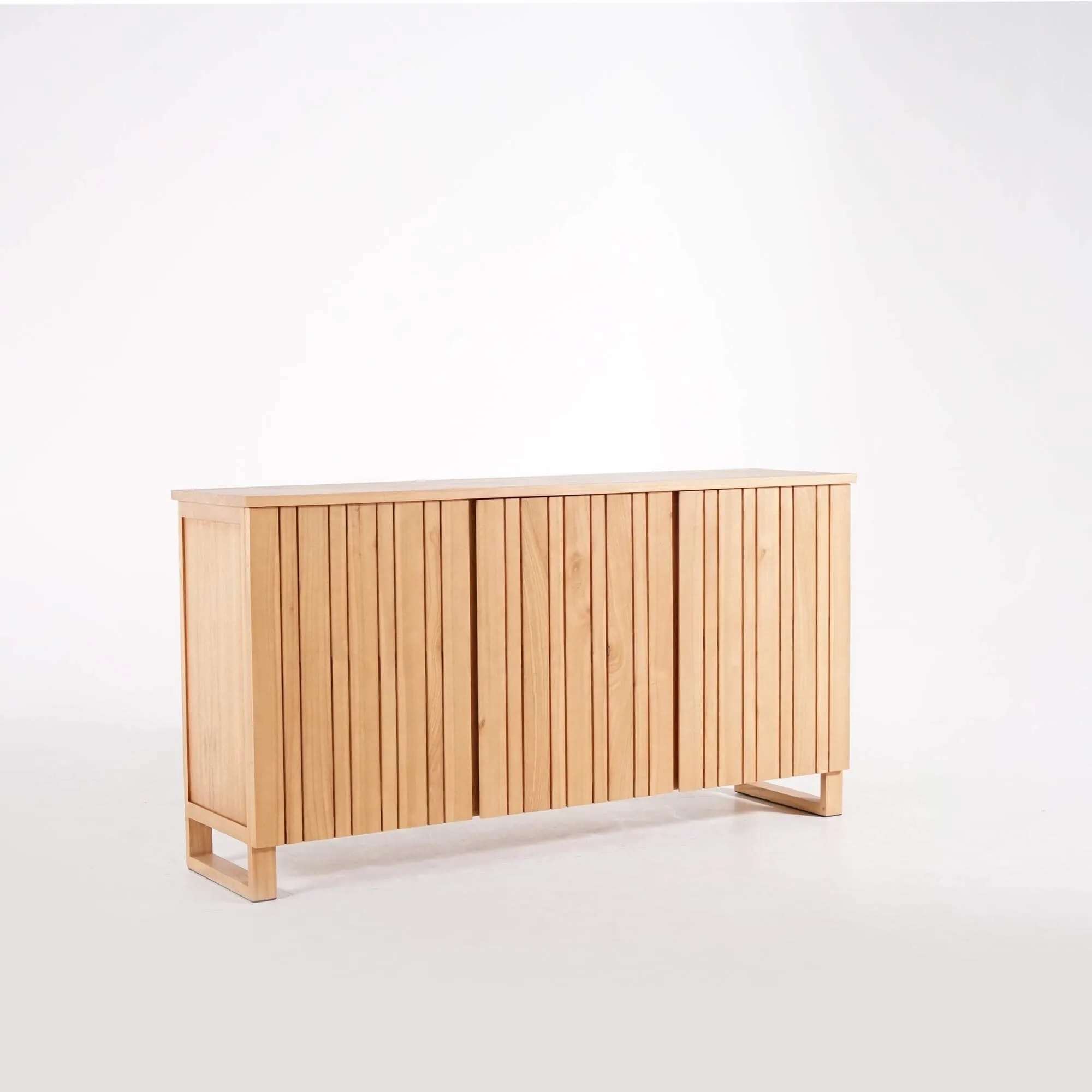 Die drei Drehtüren dieses Massivholz-Sideboards verbergen großzügigen Stauraum, der den Alltag erleichtern soll. Hinter jeder Tür befinden sich Fächer mit 49,5 cm Breite und 32 cm Innenhöhe, ideal zum Verstauen von Geschirr, Heimtextilien oder Dekorationsobjekten. Die auf 39 cm Tiefe angepassten Regalböden bieten viel Volumen und bewahren dennoch eine leichte Silhouette. Wir haben auf sorgfältige Handwerkskunst geachtet: sanft abgerundete Kanten, die seidenmatte Holztextur und stabile Verbindungen zeugen von kontinuierlicher Liebe zum Detail.