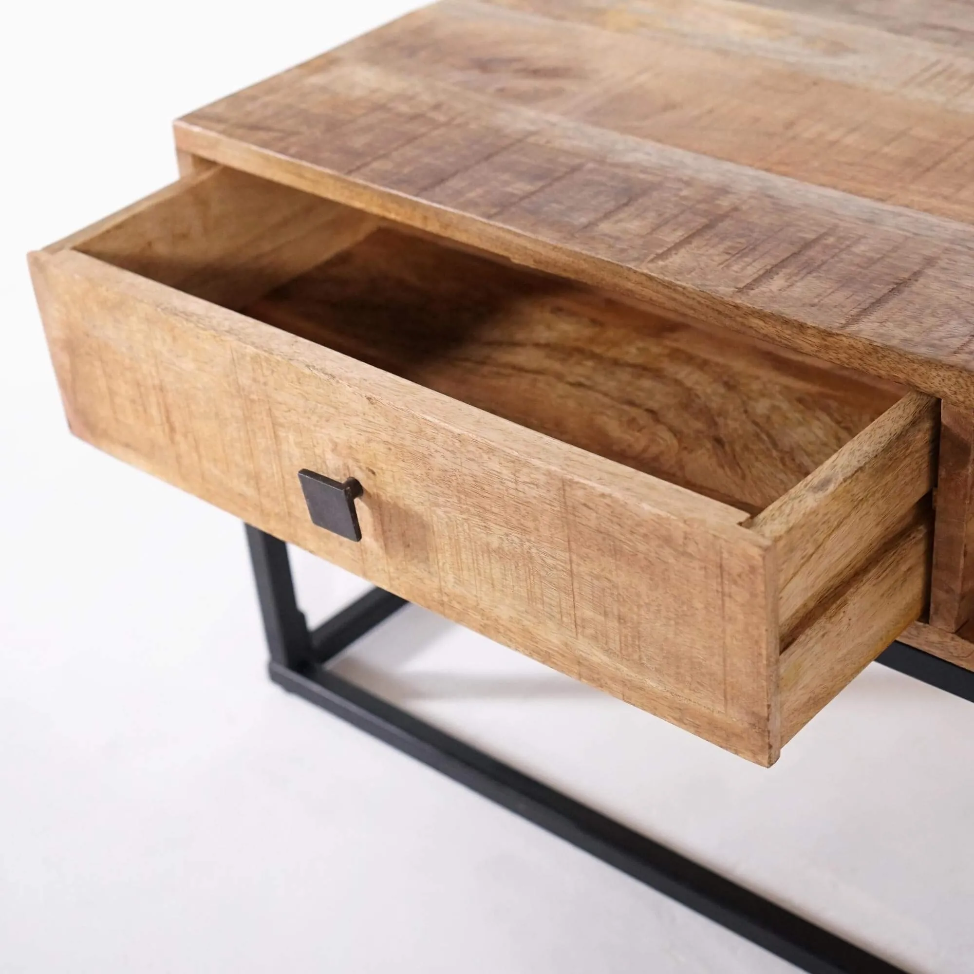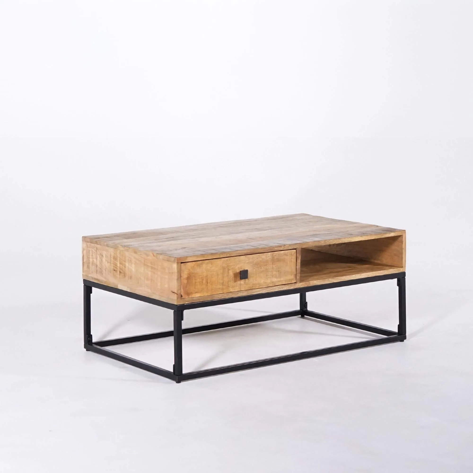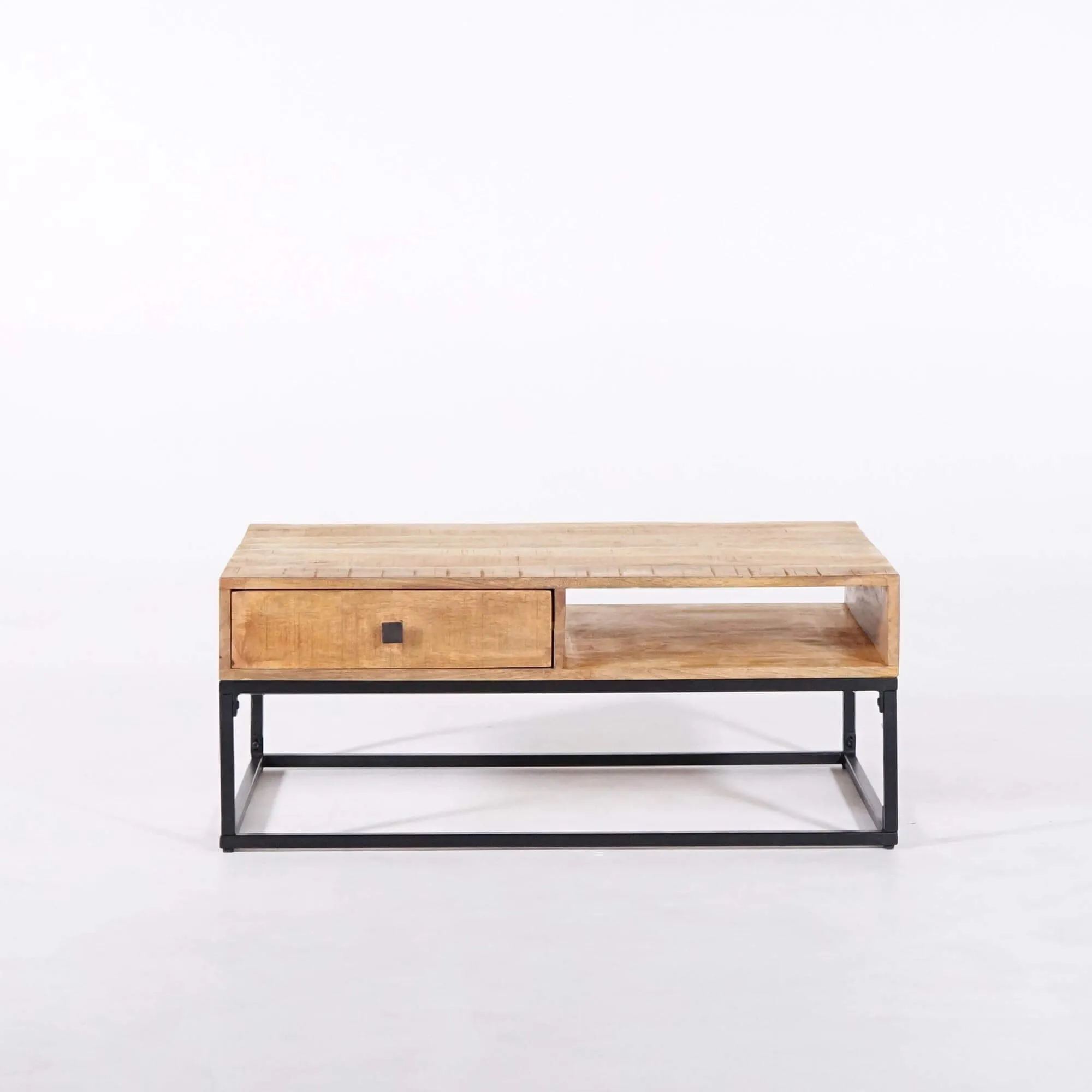 Couchtisch aus massivem Mangoholz mit Metallgestell