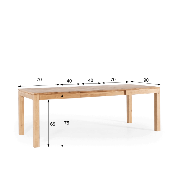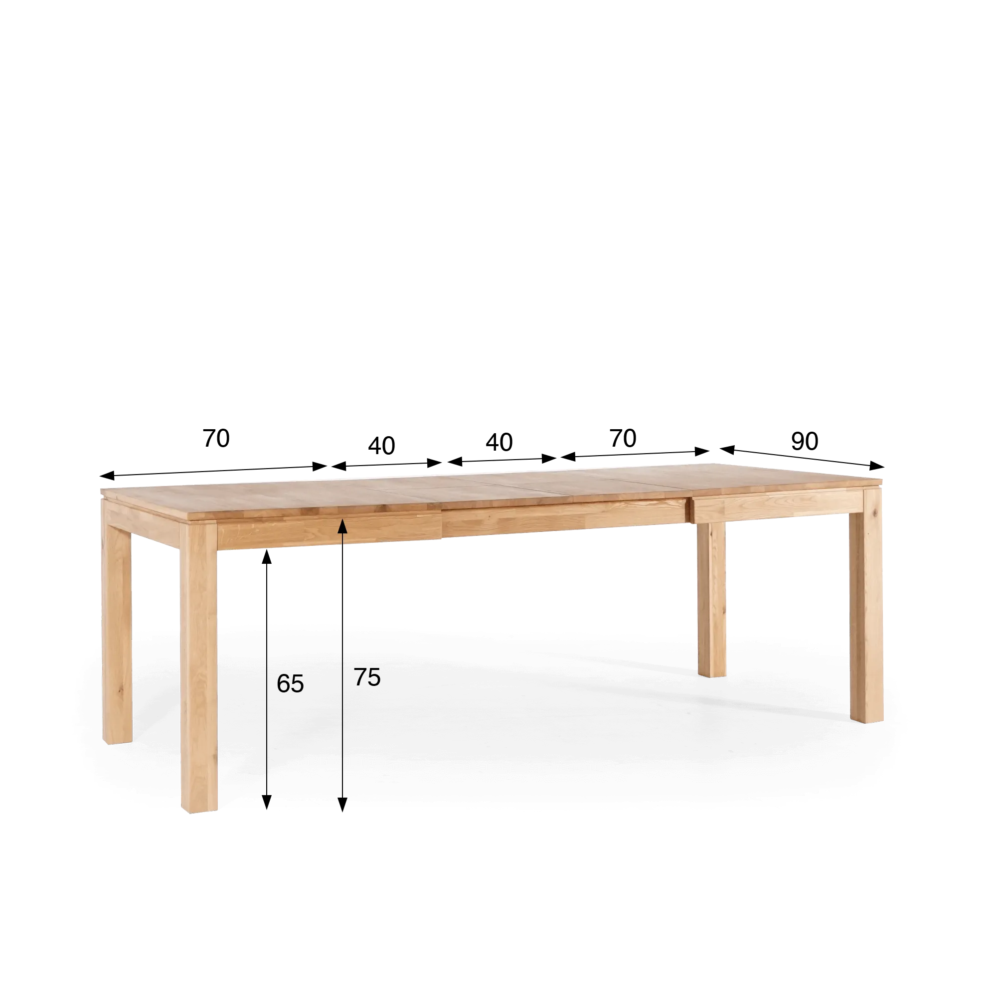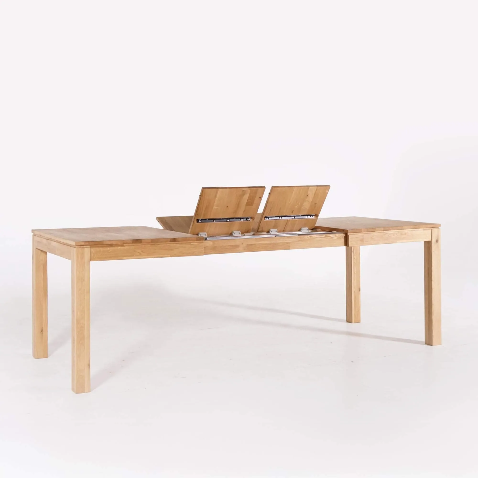 Esstisch aus Eichenholz 140 x 90 cm mit 2 Verlängerungsplatten à 40 cm