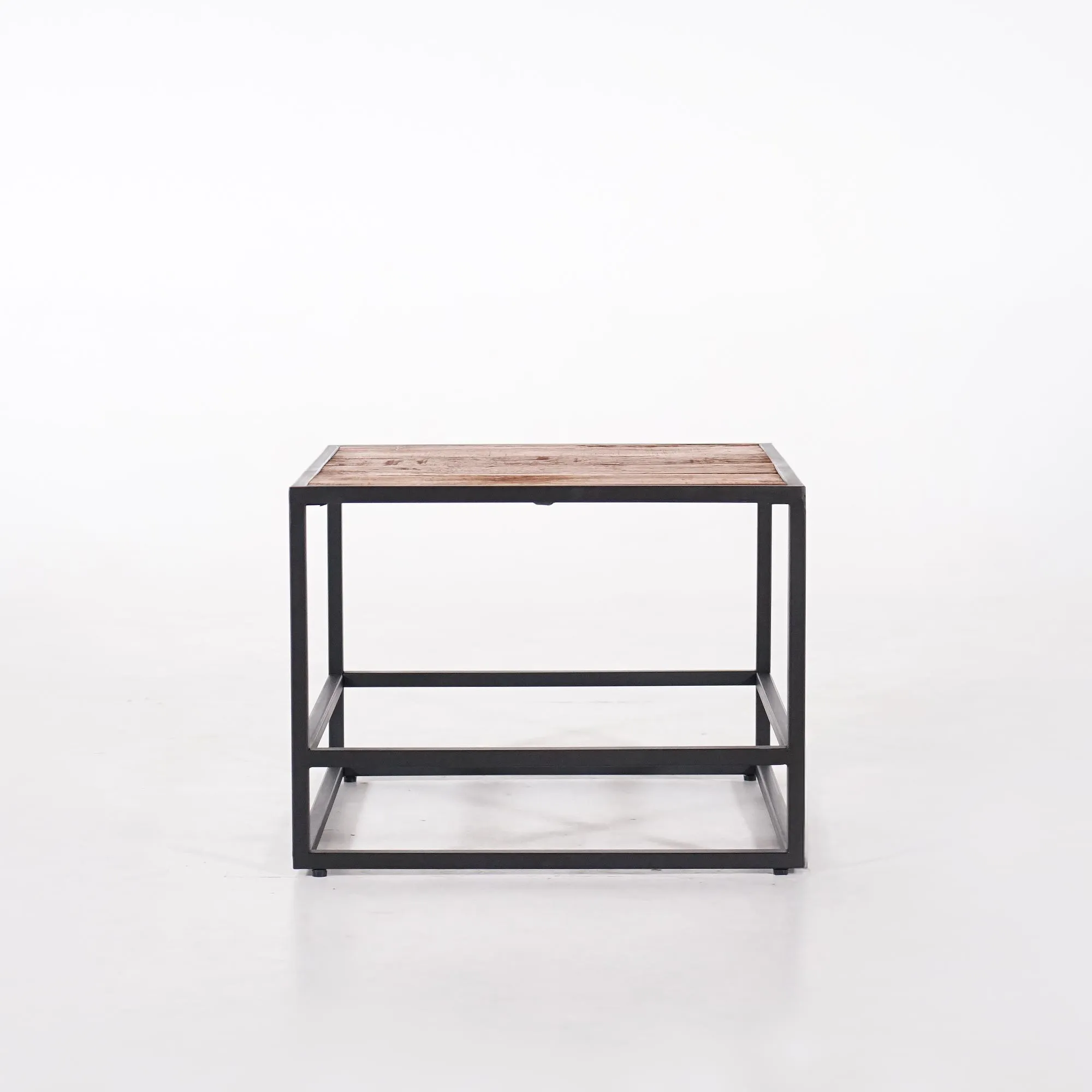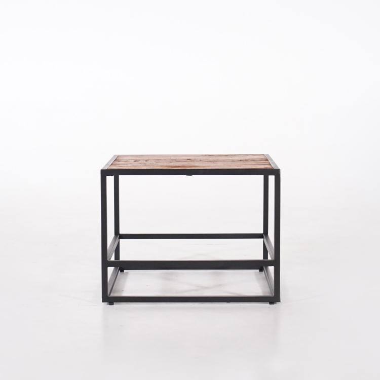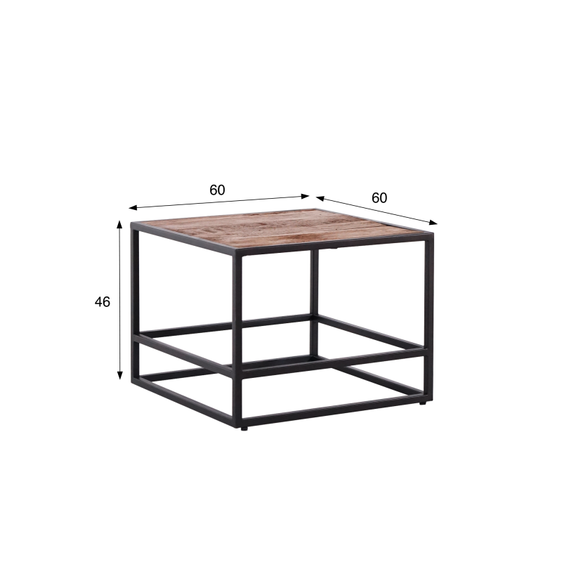 Mit seinem kompakten Format von 60 × 60 cm und einer Höhe von 46 cm fügt sich dieser Wohnzimmertisch aus recyceltem Holz perfekt in jeden Raum ein: als Beistelltisch neben einem Sofa, als kleiner Couchtisch oder als modulare Kombination mit anderen Elementen derselben Serie. Unsere Designer wollten ein Möbelstück mit ausgewogenen Proportionen schaffen, das durch die Reinheit seiner Linien besticht, ohne den Raum zu beschweren.