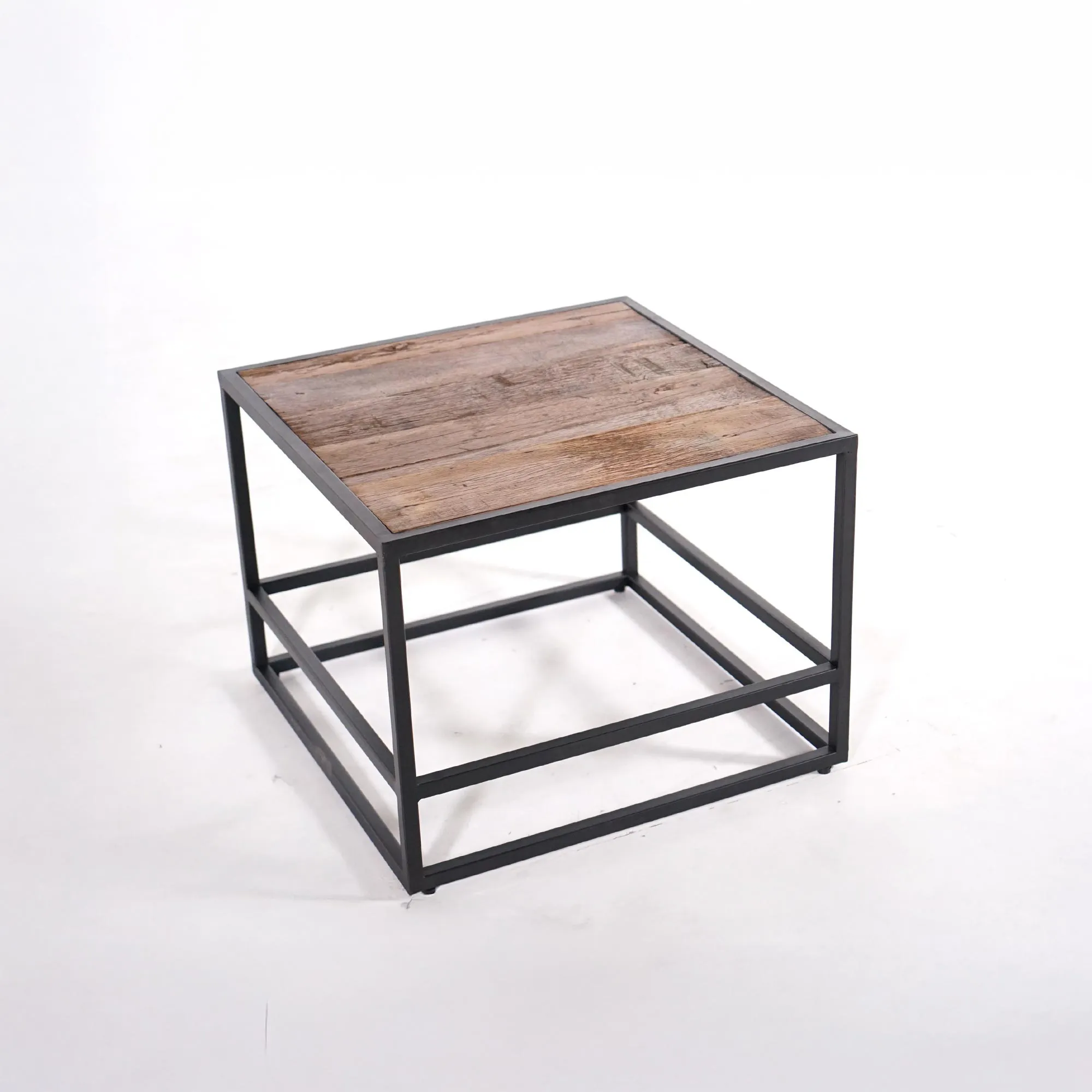 Wir haben den Wohnzimmertisch aus recyceltem Holz Recycled als ein emblematisches Stück unserer Philosophie entworfen: die Authentizität von recyceltem Holz mit der klaren Strenge von schwarzem Metall zu vereinen. Diese Kreation verkörpert das Wesen unserer Kollektion, in der der Charme des wiederverwendeten Materials auf die Präzision des industriellen Designs trifft.