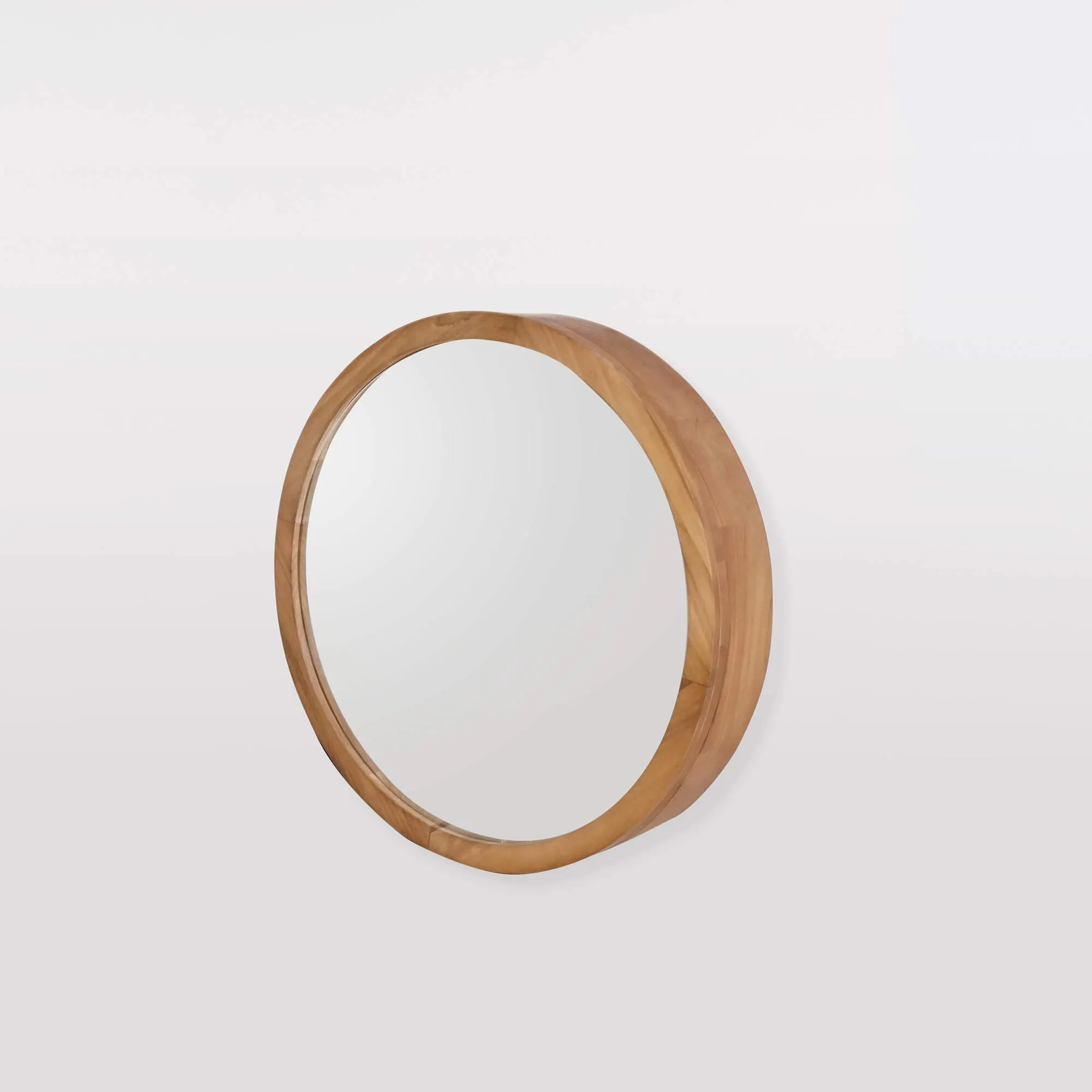 Die Wahl von massivem Teakholz war selbstverständlich für diesen runden Badezimmerspiegel mit Stauraumfach. Von Natur aus feuchtigkeitsbeständig, verleiht es dem Spiegel außergewöhnliche Langlebigkeit und bewahrt seinen Glanz über viele Jahre. Jedes Stück wird handwerklich gefertigt, und die einzigartige Maserung des Holzes macht jedes Objekt zu einem Unikat mit eigenem Charakter. Unsere Designer wollten die Essenz des Materials bewahren: kein Überfluss, keine Künstlichkeit – nur ein Gleichgewicht zwischen Funktion und Emotion.