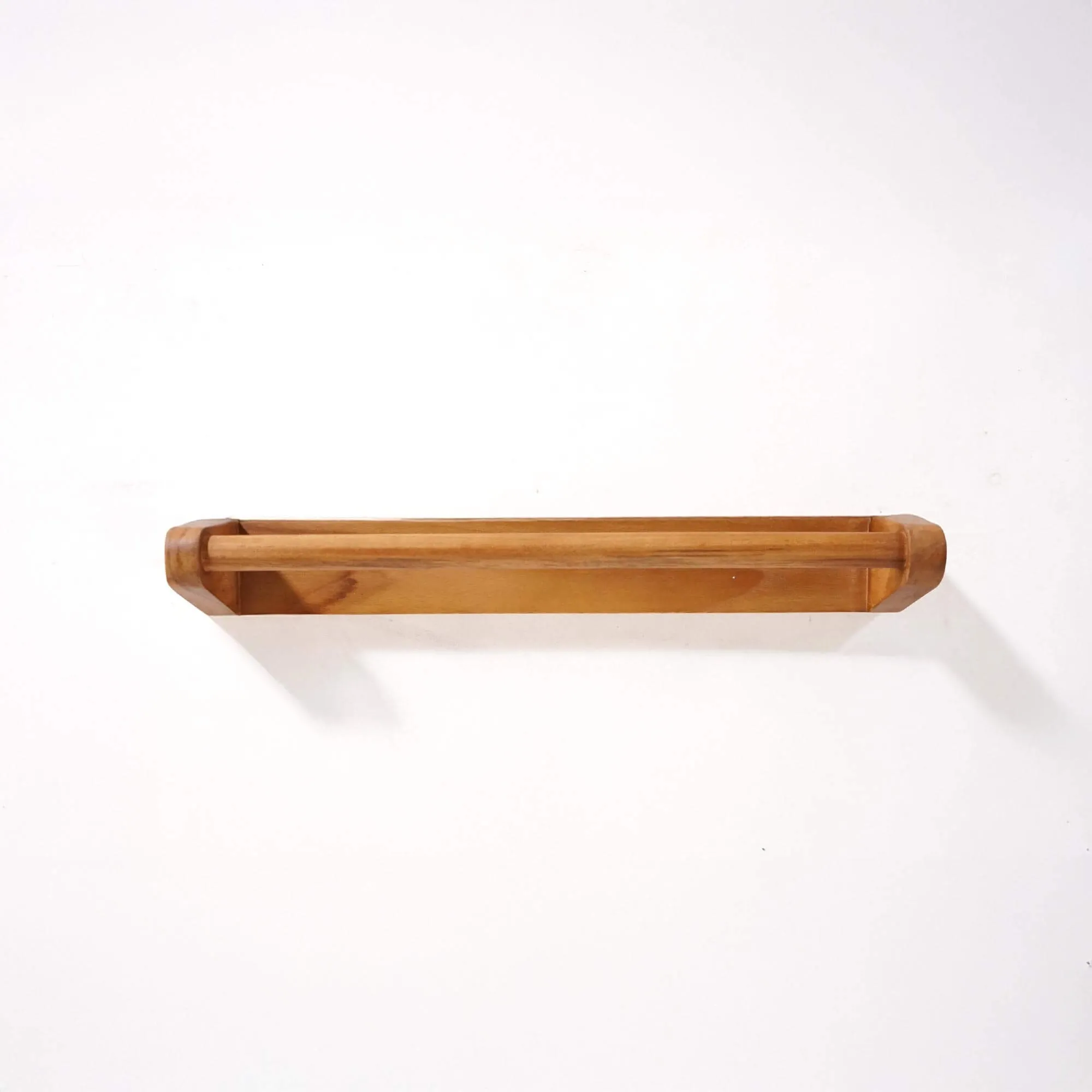 Handgefertigt aus massivem Teakholz, das aufgrund seiner Dichte und Feuchtigkeitsbeständigkeit ausgewählt wurde, besticht dieser Handtuchhalter durch seine sanften Linien und seine feine Verarbeitung. Die Kanten sind sanft abgerundet und fühlen sich angenehm glatt an, während die Oberfläche die natürliche Maserung des Holzes mit einem dezenten Seidenglanz offenbart.