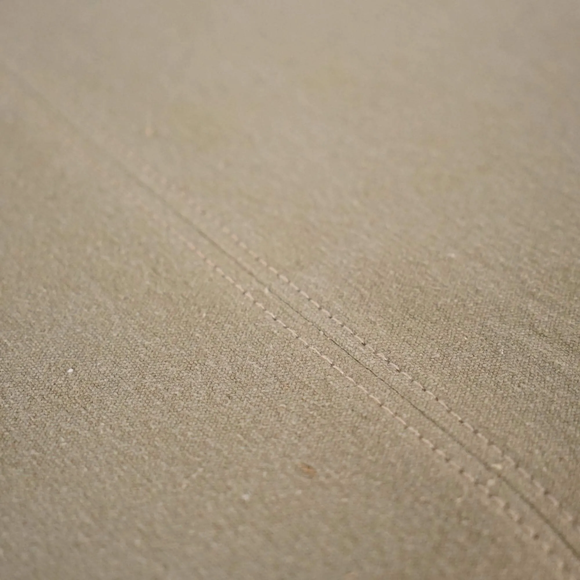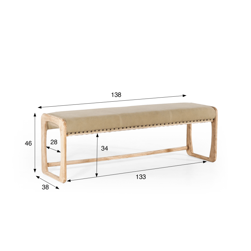 Die Sitzfläche unserer Soline-Bank aus Massivholz und khakifarbenem Stoff, mit einer Höhe von 46 cm, ist mit einem weichen khakifarbenen Stoff bezogen und mit einer regelmäßigen Reihe dekorativer Nägel befestigt. Dieses dezente, elegante Detail betont die perfekte Spannung des Bezugs und verleiht der Bank eine authentische handwerkliche Note. Der Komfort zeigt sich sowohl in der Geschmeidigkeit der Sitzfläche als auch in der Stabilität der Struktur, die für den täglichen Gebrauch konzipiert wurde.