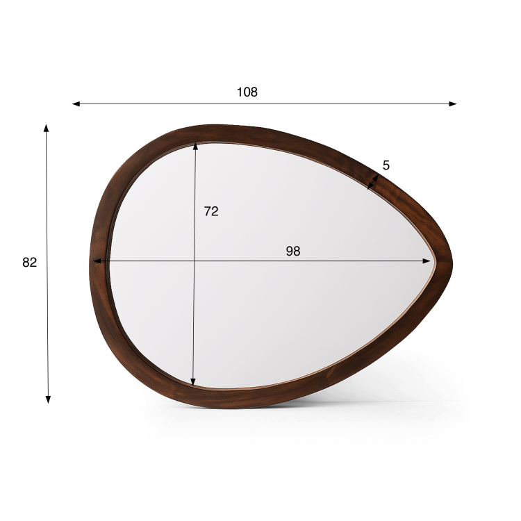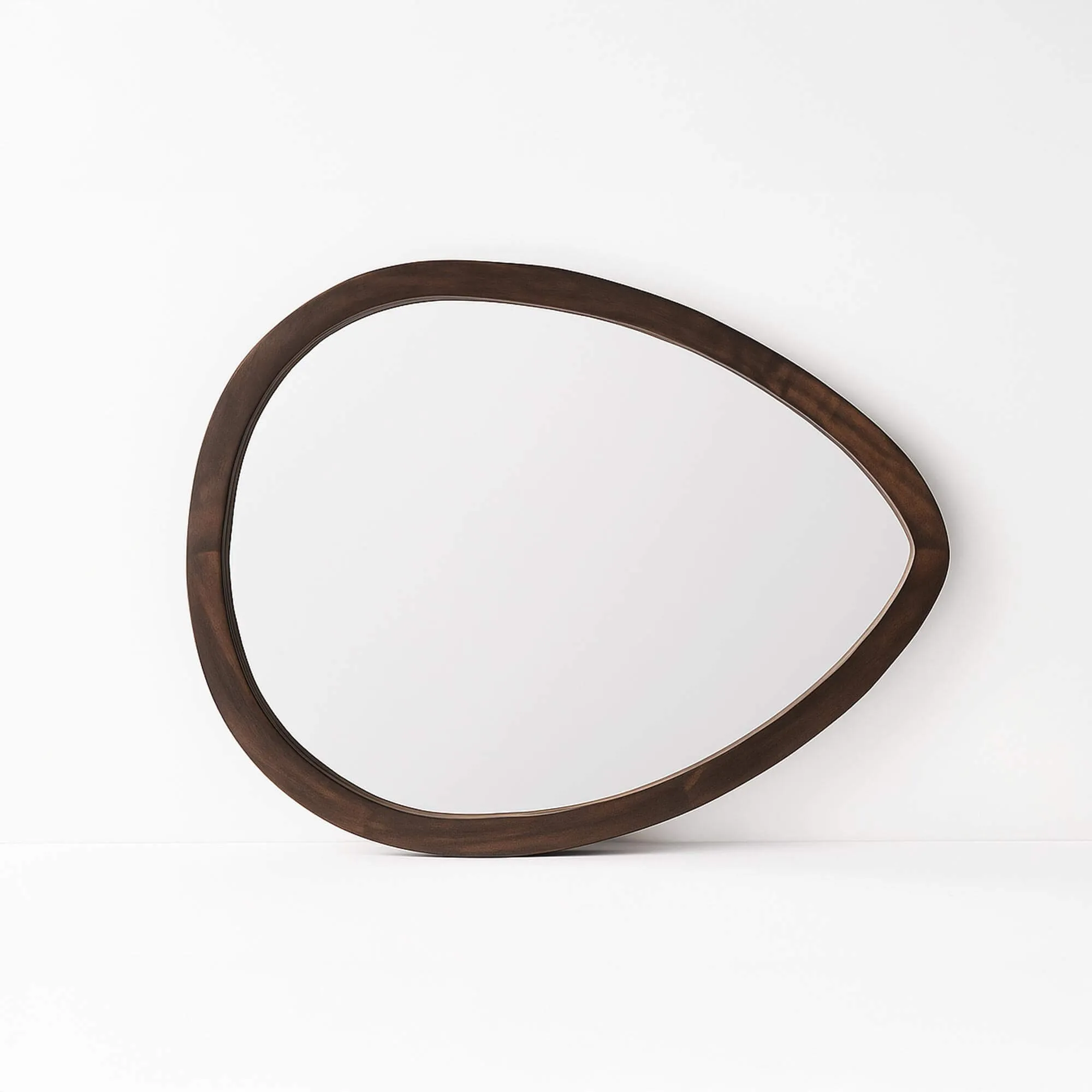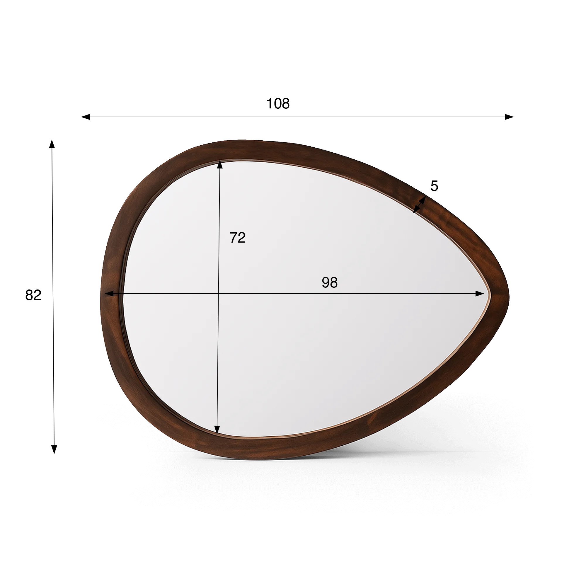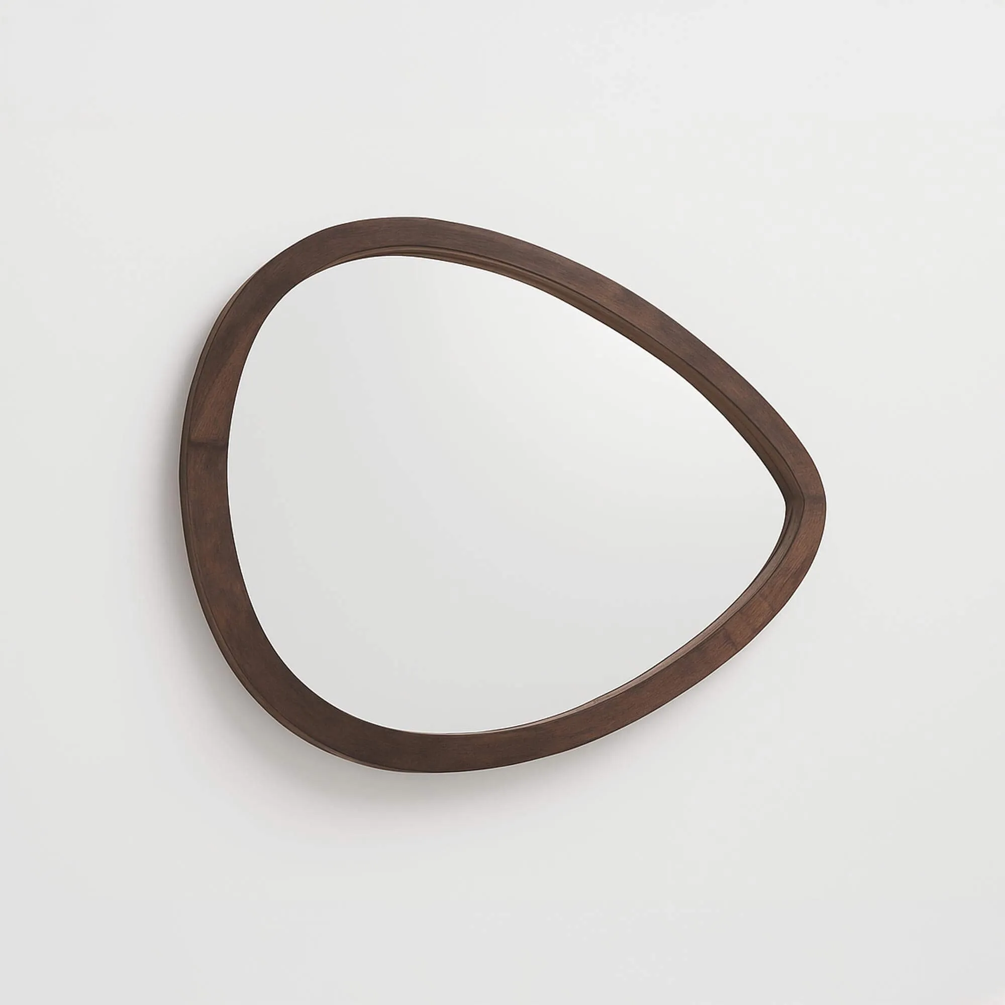 Die freien Linien dieses Spiegels mit Massivholzrahmen und organischem Design, geformt wie ein vom Lauf der Zeit polierter Kieselstein, verleihen ihm eine zugleich moderne und zeitlose Ausstrahlung. Die sorgfältig von Hand gearbeitete Holzstruktur zeigt feine braune Nuancen, die je nach Lichteinfall variieren und die ganze Schönheit des natürlichen Materials hervorheben. Jedes Stück ist einzigartig, mit leichten Farbunterschieden und einer individuellen Maserung – das Markenzeichen der Handwerkskunst, die wir bei BARAK 7 pflegen.