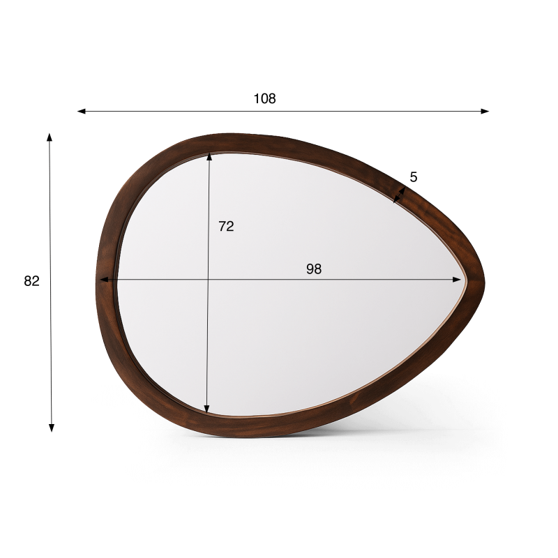 Mit seinen harmonischen Maßen (108 × 82 cm) findet dieser Spiegel mit handgefertigtem Rahmen aus Massivholz und organischem Design ganz natürlich seinen Platz über einer Konsole, einem Sideboard oder einem Badmöbel. Die dezente Tiefe von 5 cm betont die Präsenz des Rahmens, ohne die Wandkomposition zu beschweren. Im Eingangsbereich platziert, fängt er das Licht ein und lässt den Raum optisch größer wirken, während er eine warme Note hinzufügt.