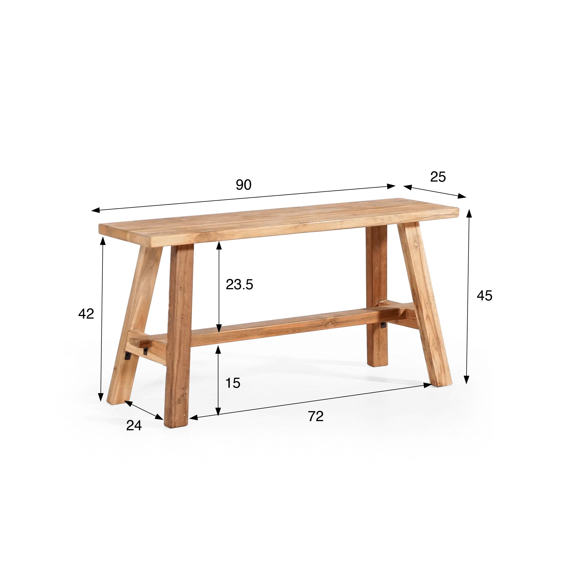 Mit ihren 90 cm Länge, 25 cm Tiefe und 45 cm Höhe findet die Bank aus massivem Naturholz Aska überall ihren Platz: im Eingangsbereich für Taschen und Jacken, am Fußende des Bettes für eine Decke, oder als zusätzliche Sitzgelegenheit an einem geselligen Tisch. Die Querstrebe, 15 cm über dem Boden positioniert, stabilisiert das Ganze, ohne die Linie zu beschweren, und sorgt im Alltag für ein angenehmes, sicheres Sitzgefühl.