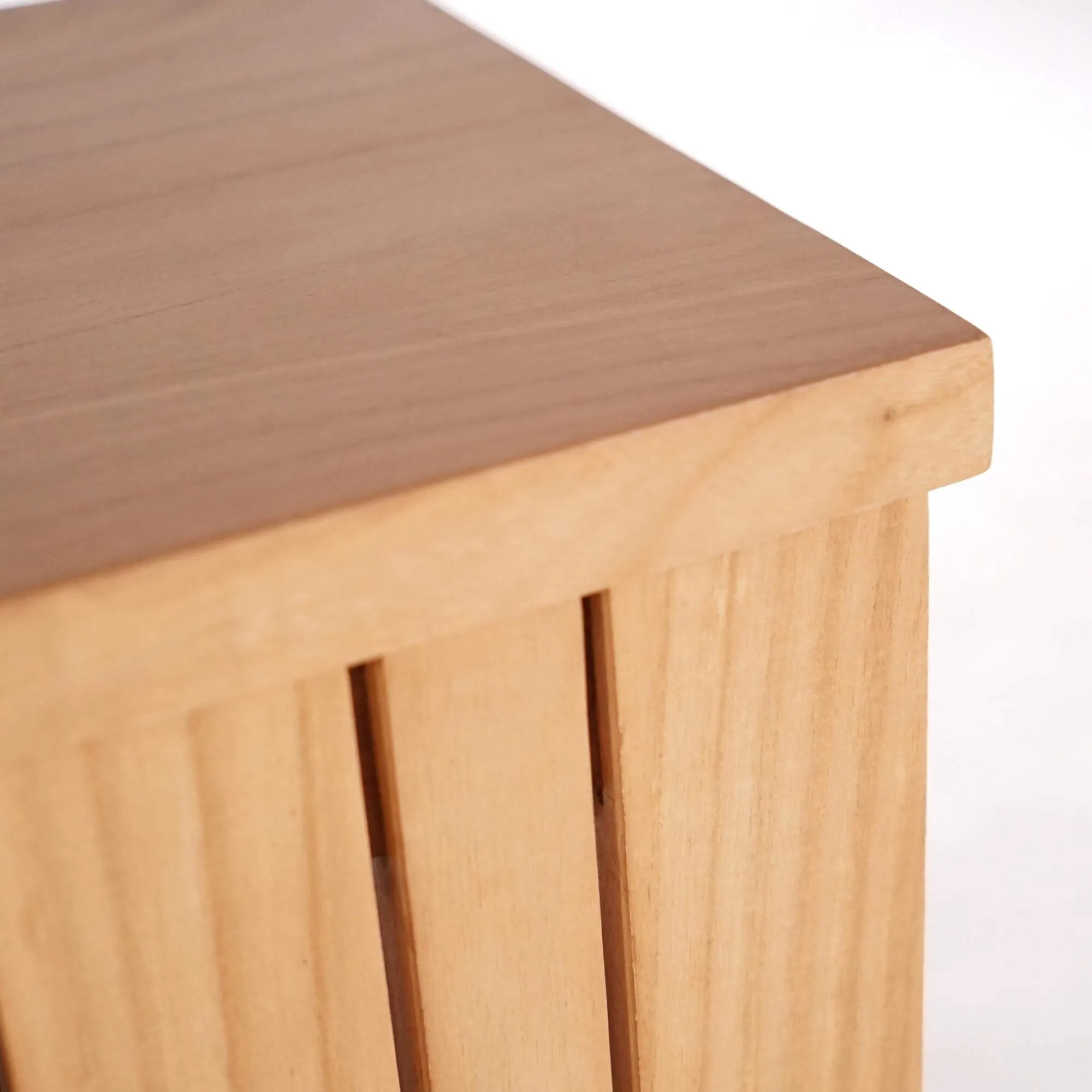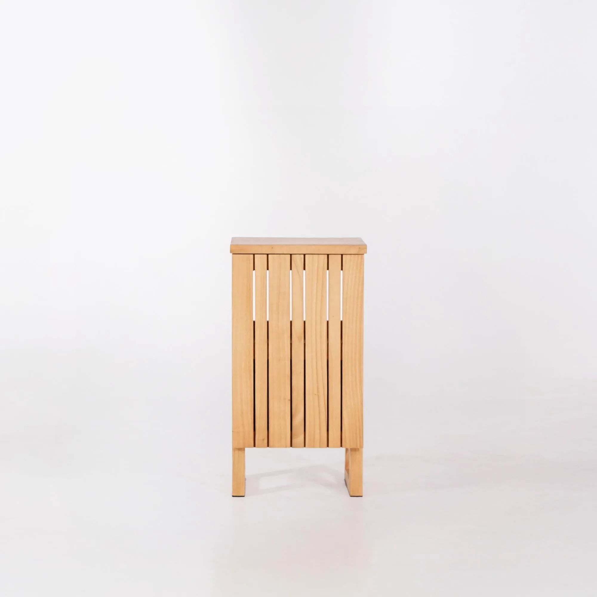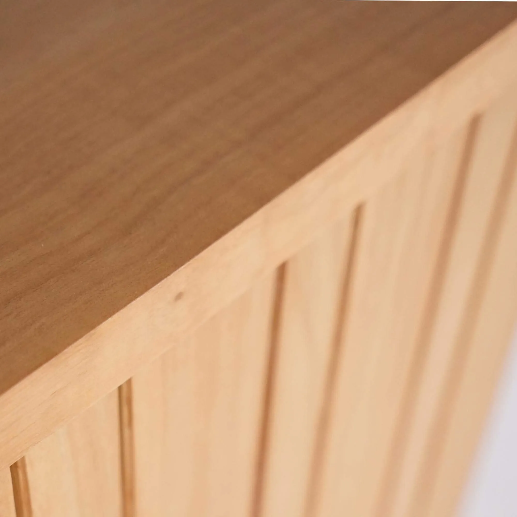 Bei der Gestaltung des Waschbeckenunterschranks aus Massivholz Satya wollten wir ein Möbelstück schaffen, das zugleich funktional, elegant und authentisch ist – gedacht für Innenräume, die die Wärme von Holz und die Schlichtheit klarer Linien schätzen. Gefertigt aus massivem Mindiholz zeigt dieses Möbel eine warme, natürliche Farbnuance, die sich mühelos in ein modernes, Japandi- oder minimalistisches Badezimmer einfügt. Die vertikalen, einzeln gearbeiteten Lamellen erzeugen ein zartes Schattenspiel, das die Front lebendig wirken lässt, ohne sie zu überladen.