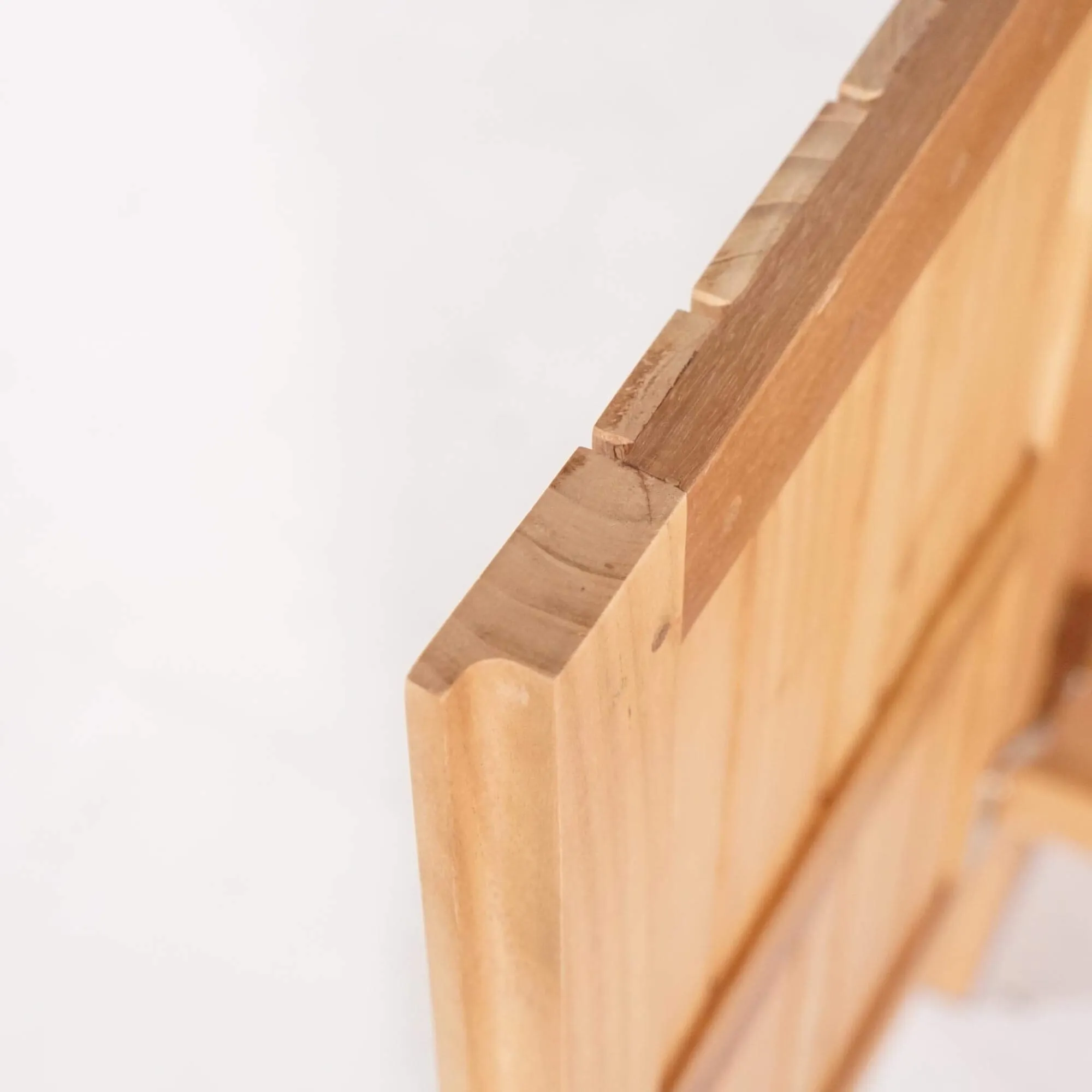 Das Möbel wird montiert geliefert und überzeugt durch eine bemerkenswerte Stabilität, die seiner Massivholzstruktur und den traditionellen Verbindungen zu verdanken ist. Besonders stolz sind wir auf die handwerkliche Arbeit an der Tür, deren feine Details unser Bestreben widerspiegeln, langlebige und ausgewogene Stücke anzubieten.