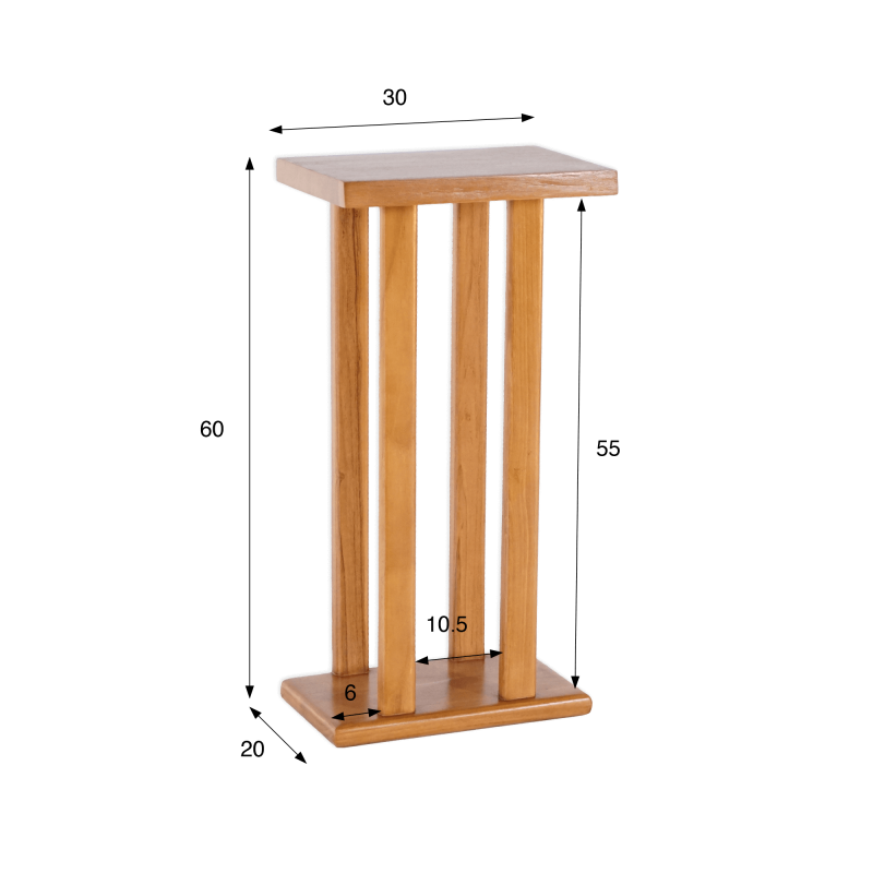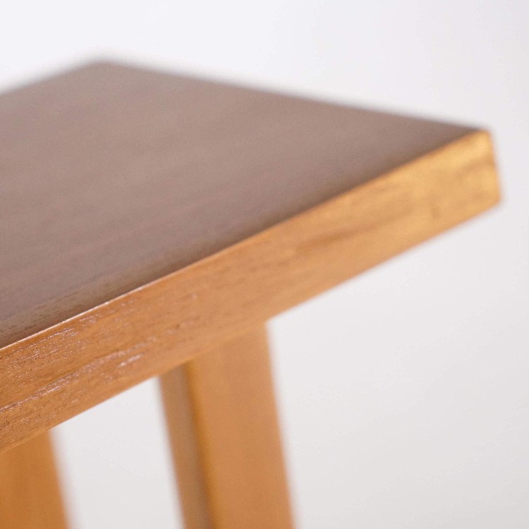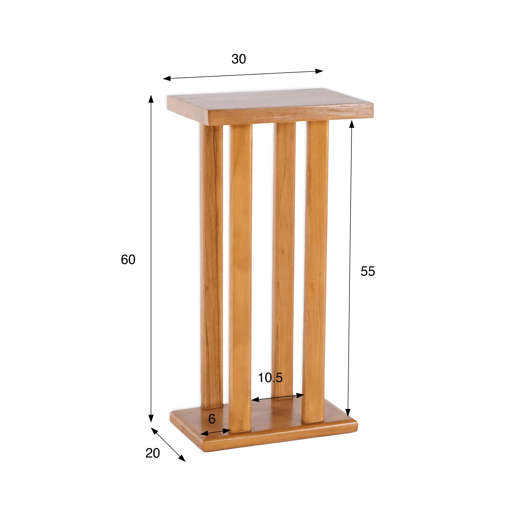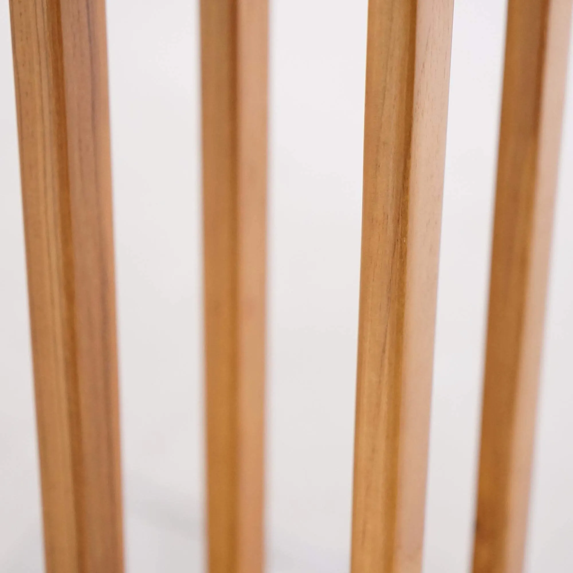 Gefertigt aus massivem Teakholz betont dieser Handtuchhalter die warme Ausstrahlung dieses von Natur aus feuchtigkeitsbeständigen Holzes. Die glatte, seidig matte Oberfläche lässt die feinen Nuancen des Materials erkennen, während die bewusst schlanken Streben den natürlichen und japandi inspirierten Charakter des Designs verstärken. Mit seinen 60 cm Höhe, 30 cm Breite und einem 20 cm tiefen Sockel fügt er sich mühelos sowohl in kleine Badezimmer als auch in großzügigere Räume ein.
