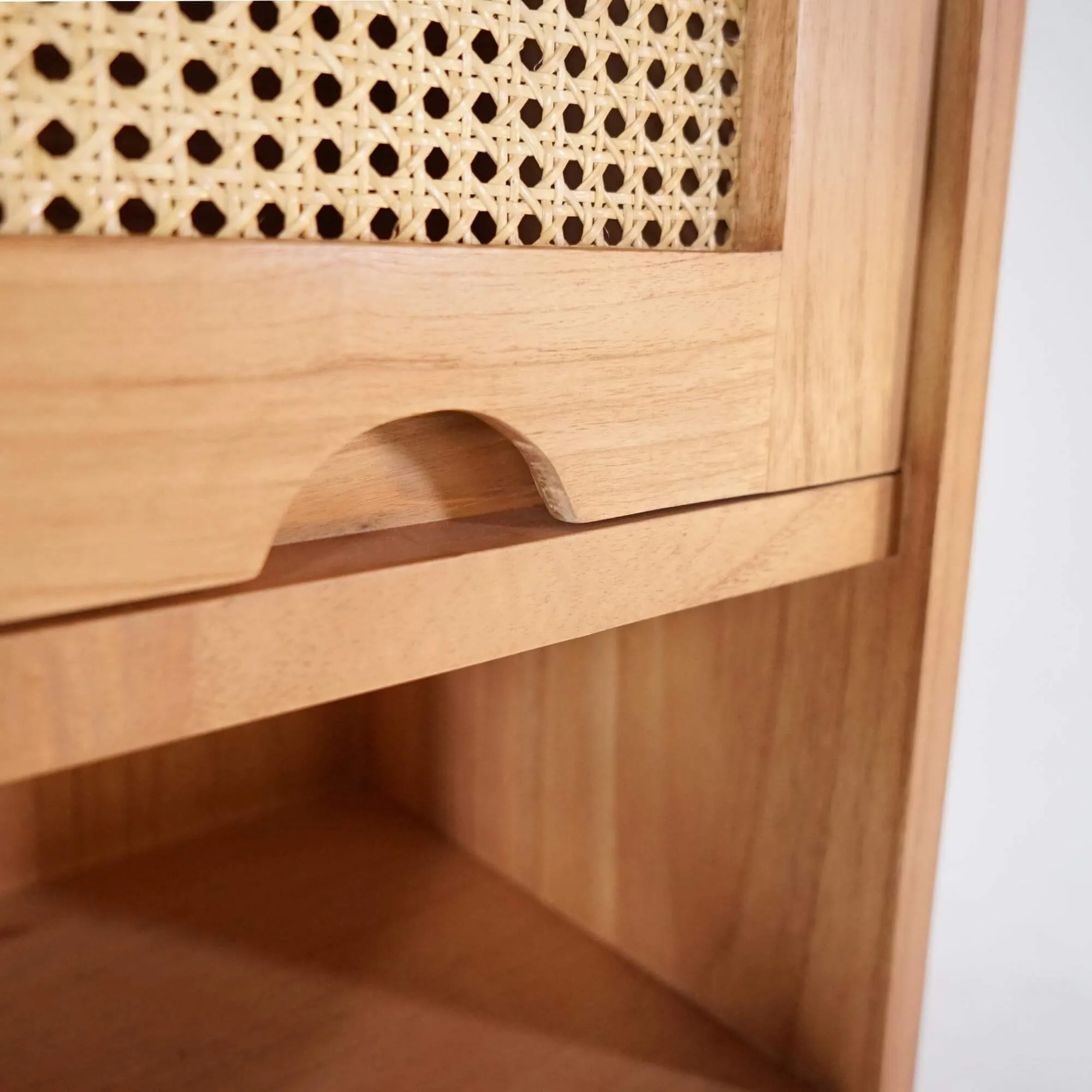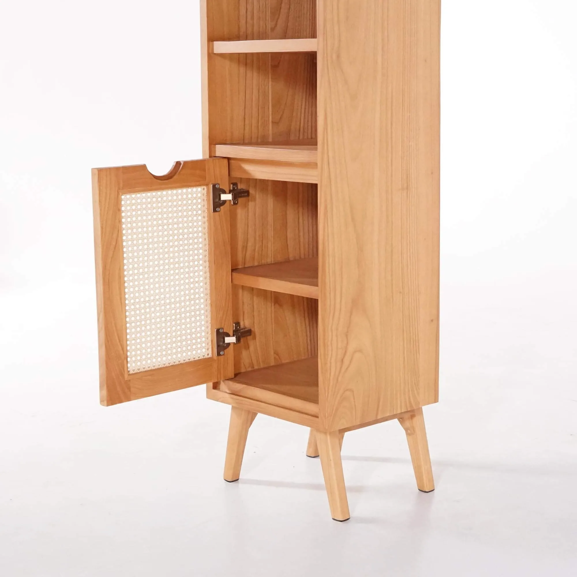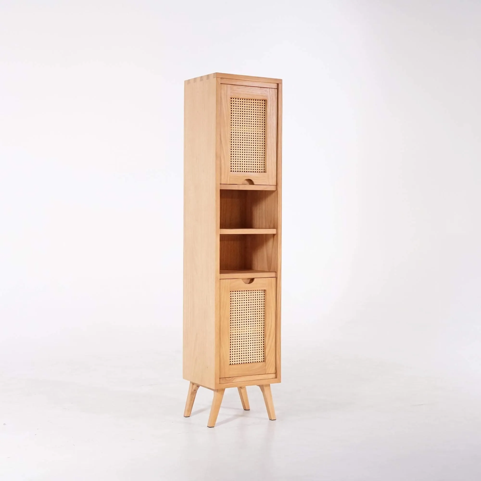 Die Holz-Badezimmersäule Anaya verkörpert das perfekte Gleichgewicht zwischen Natürlichkeit, Sanftheit und Funktionalität. Im skandinavischen Stil mit einem Hauch von Romantik entworfen, verbindet sie die Wärme von Mindi-Holz mit der Zartheit von natürlichem Wienergeflecht und schafft so eine helle, beruhigende Atmosphäre. Mit ihrer schlanken Silhouette von 180 cm fügt sie sich harmonisch ins Badezimmer ein und bietet zugleich großzügigen Stauraum für den Alltag.