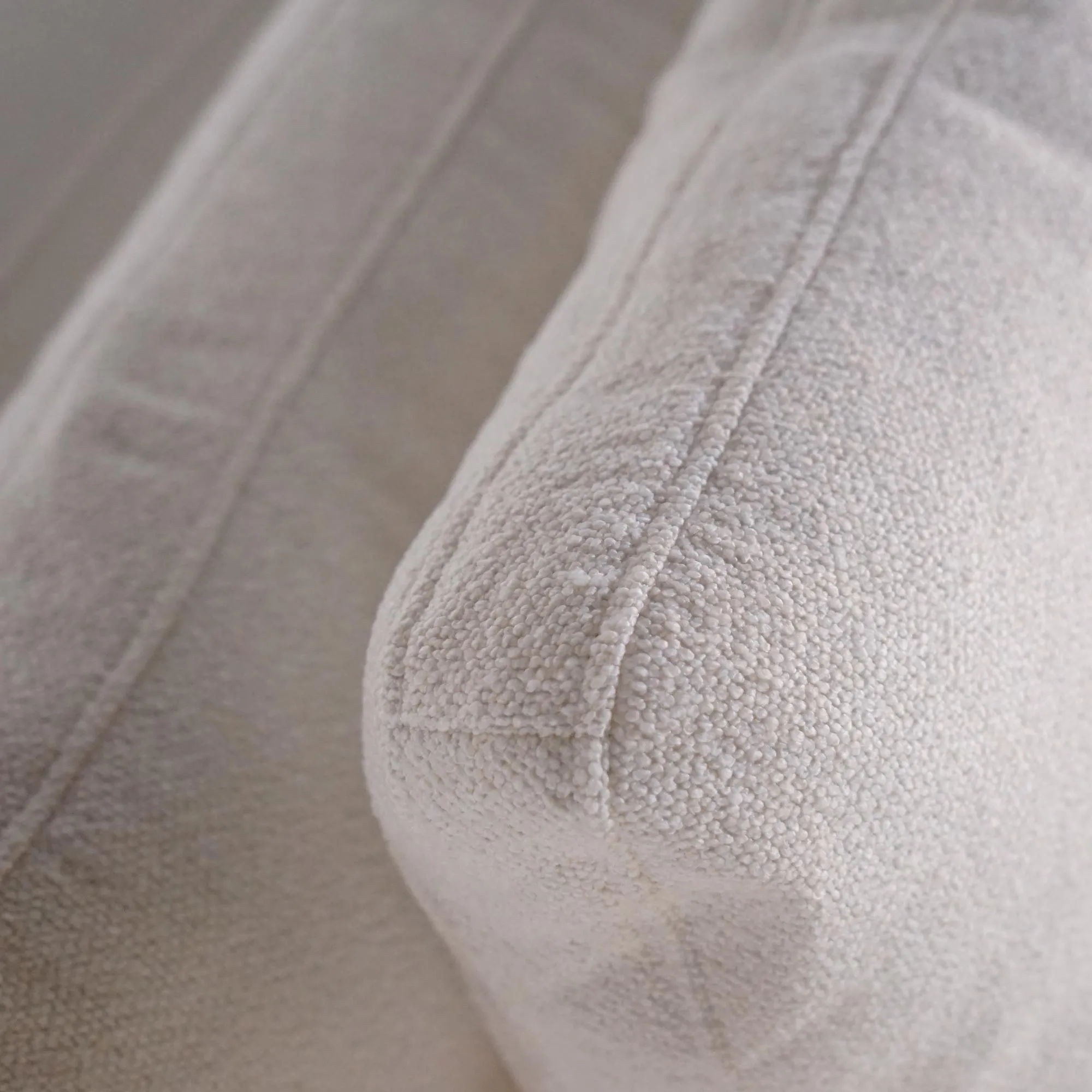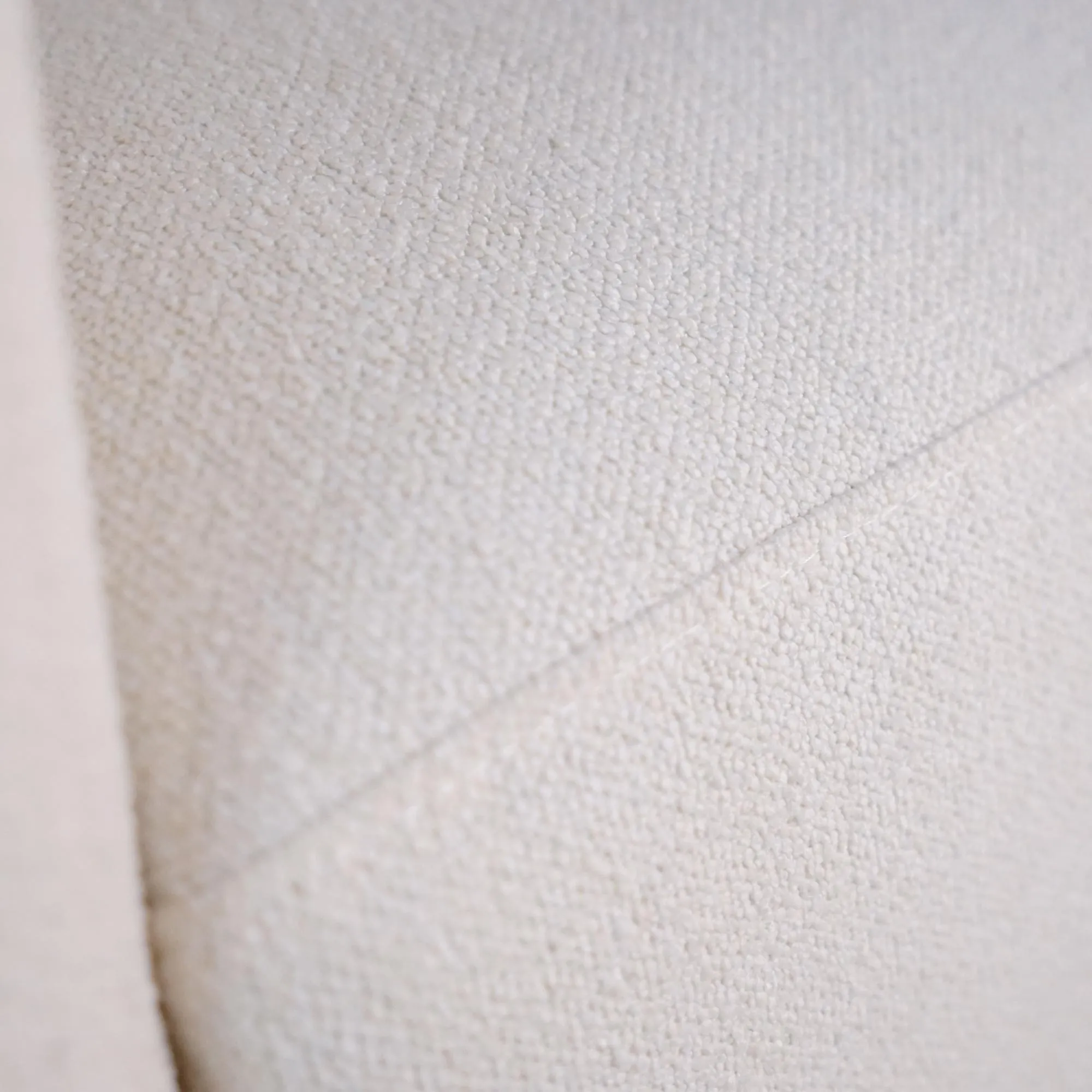 Der Bezug unseres modernen 3-Sitzer-Sofas Miro wurde aufgrund seiner dezent bouclierten Struktur und hohen Strapazierfähigkeit (70.000 Martindale-Zyklen) ausgewählt. Die weiche, umhüllende Haptik steht in zartem Kontrast zu den klaren Linien. Dank der wasserabweisenden Imprägnierung ist der Stoff pflegeleicht, resistent gegen leichte Flecken und behält seinen Glanz im Laufe der Zeit. Der Stoff ist nach europäischen Brandschutznormen zertifiziert und vereint Sicherheit, Langlebigkeit und Ästhetik.