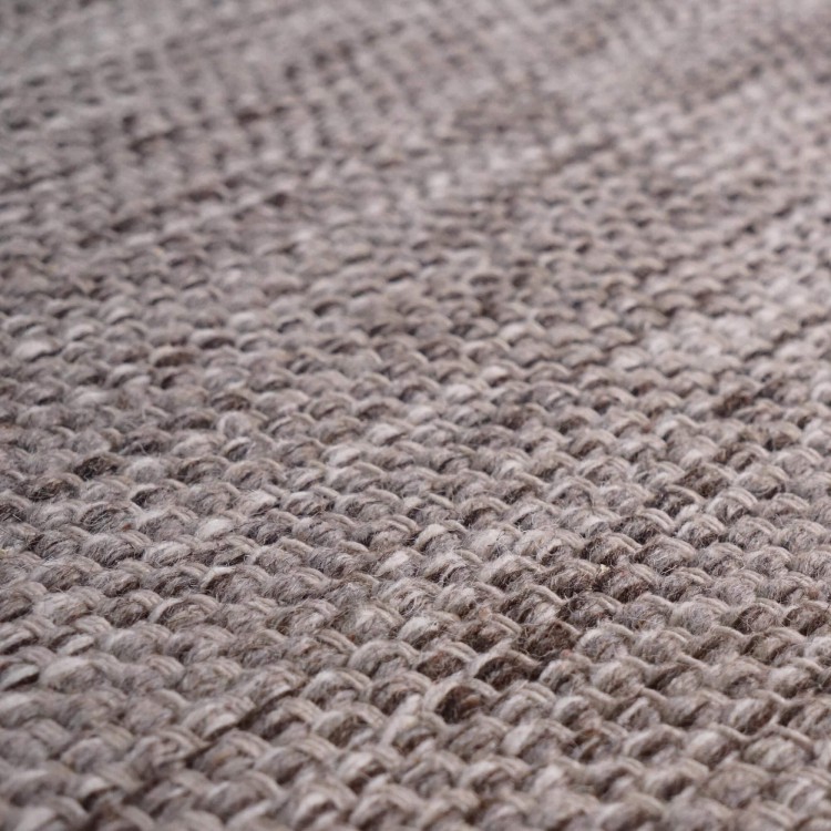 Von Hand gewebt aus einer überwiegend aus Wolle bestehenden Mischung mit Baumwolle, zeigt unser Elowen Wollteppich eine subtil unregelmäßige, lebendige Textur, die das Licht sanft einfängt. Die Nuancen von Braun und Beige treten in ein feines Reliefspiel und unterstreichen den handwerklichen Charakter dieses Wollteppichs, ohne das Gesamtbild zu erstarren. Unter den Füßen fühlt er sich angenehm warm an, mit einer Stärke von etwa 5 mm, die täglichen Komfort bietet und sich zugleich problemlos in Durchgangsbereiche integrieren lässt.