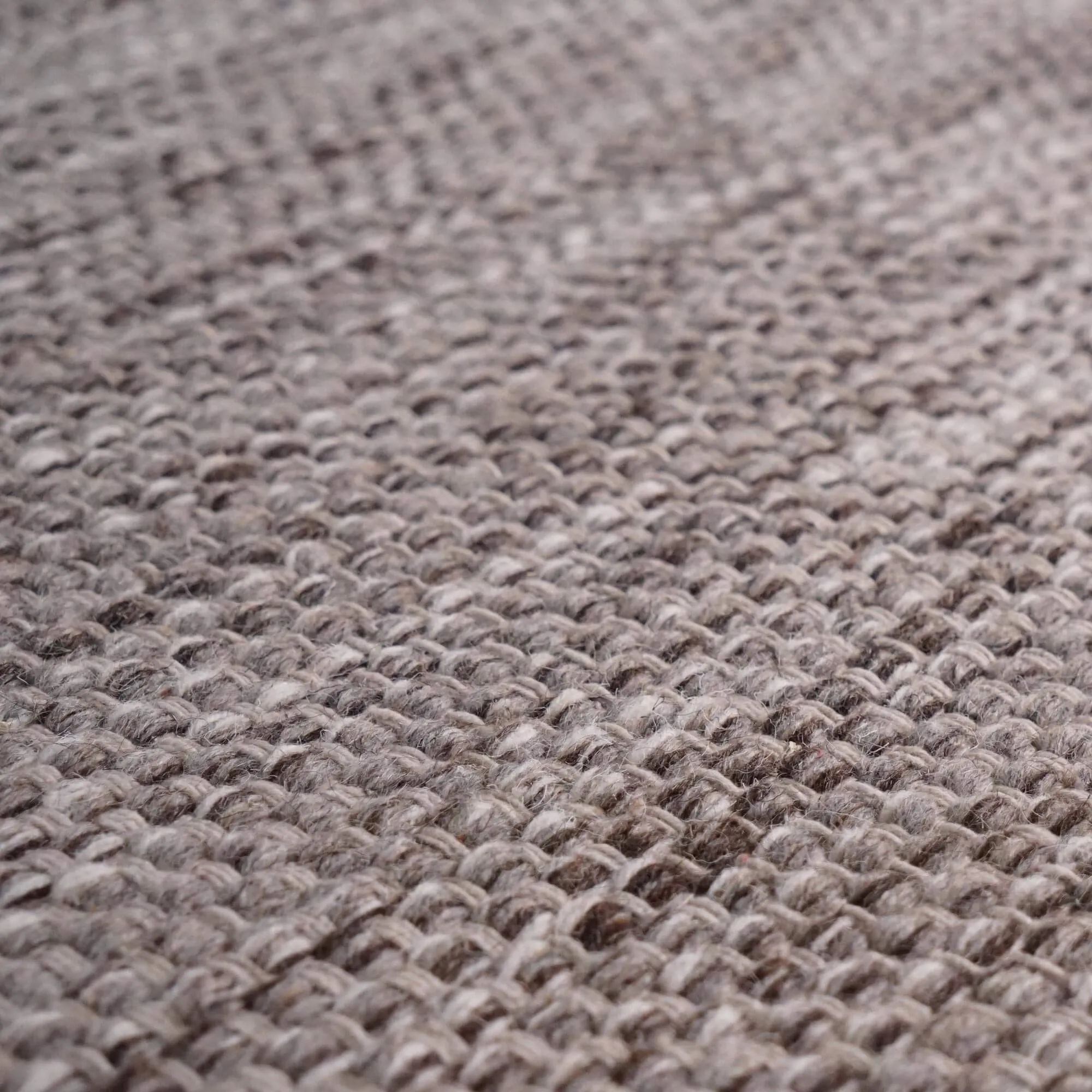Bei der Entwicklung dieses Wollteppichs wurde besonderes Augenmerk auf die Auswahl der Fasern und deren ausgewogenes Zusammenspiel gelegt. Die überwiegend verwendete Wolle verleiht eine umhüllende Haptik und sofortige visuelle Wärme, während die Baumwolle das Gewebe auflockert und das Erscheinungsbild verfeinert. Diese Kombination schafft eine lebendige Oberfläche mit subtilen Braun- und Beigetönen, die sich je nach Lichteinfall verändern und dem Wollteppich eine authentische, niemals starre Präsenz verleihen. Die bewusst unregelmäßige Handwebung macht die Handschrift des Kunsthandwerkers sichtbar und verleiht jedem Stück einen einzigartigen Charakter.