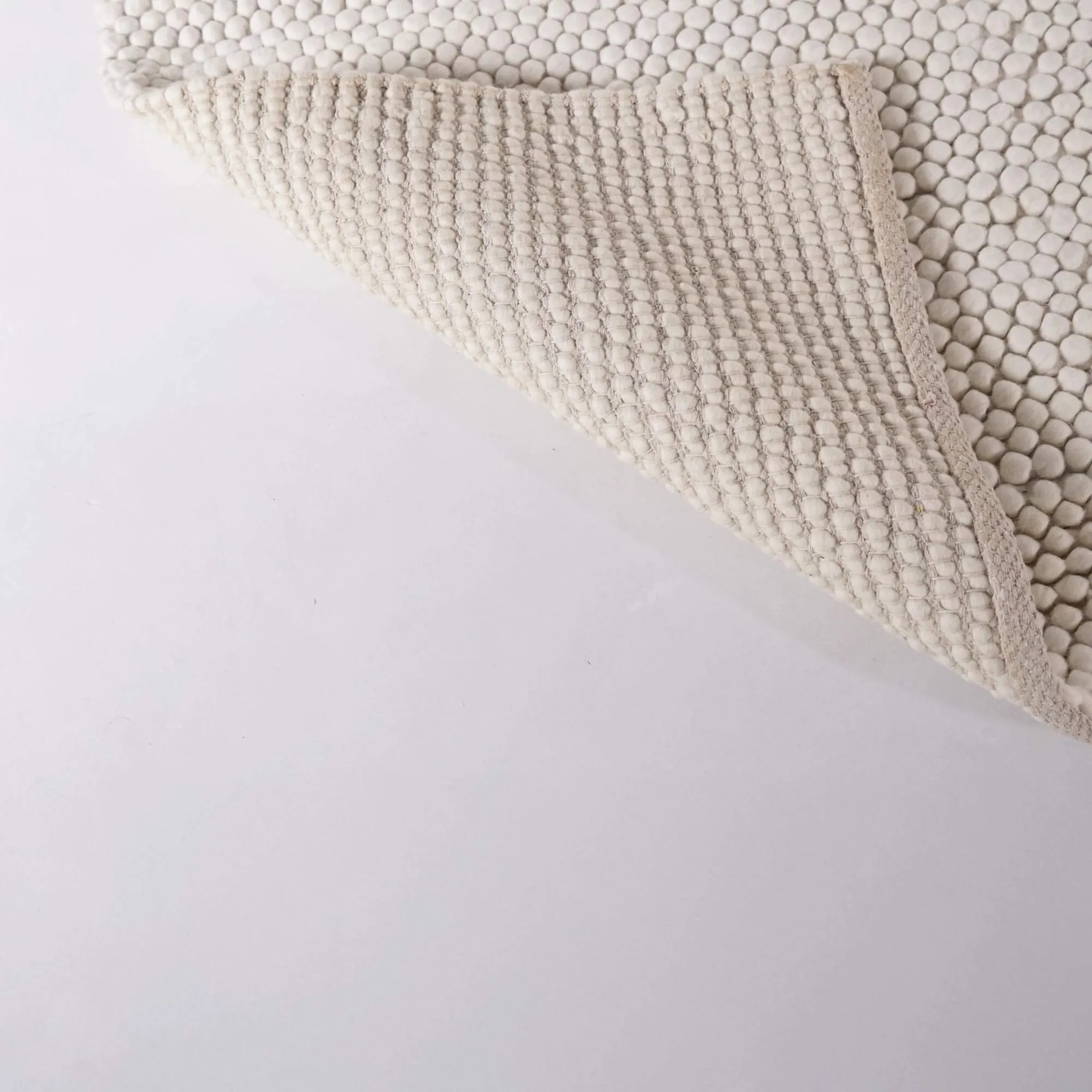 Die weiße Variante der Tessa-Wollteppiche bringt eine ruhige Helligkeit in Innenräume—ob minimalistisch, boho oder zeitgenössisch. Besonders gefällt uns die lichtvolle Atmosphäre, die entsteht, wenn Tageslicht über die Oberfläche streicht und die Rundung der Webstruktur subtil hervorhebt. Dieser Wollteppich wurde als strukturierendes Dekorelement gedacht: ein neutraler Grund, der die umliegenden Möbel atmen lässt und zugleich ein Gefühl von Geborgenheit vermittelt.
