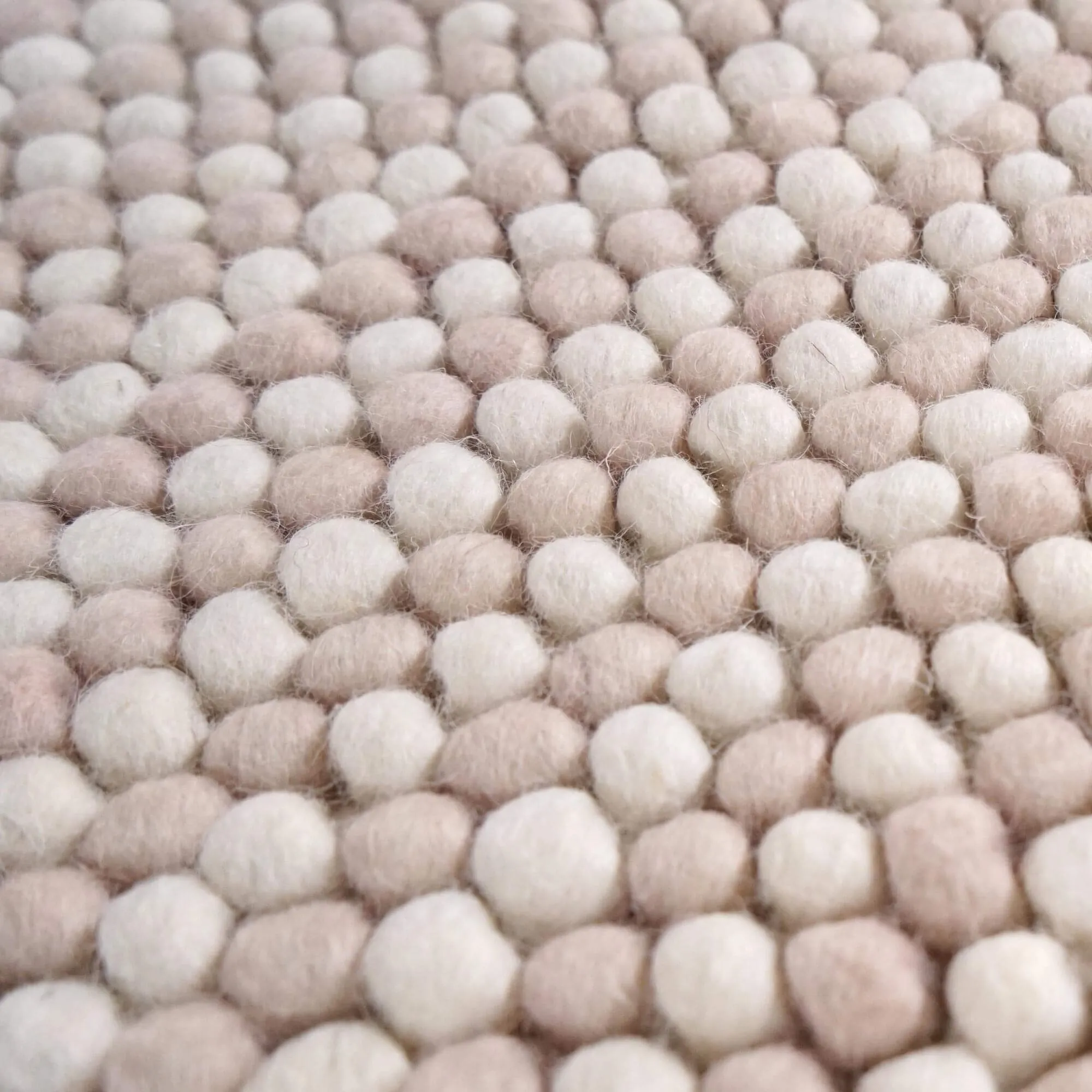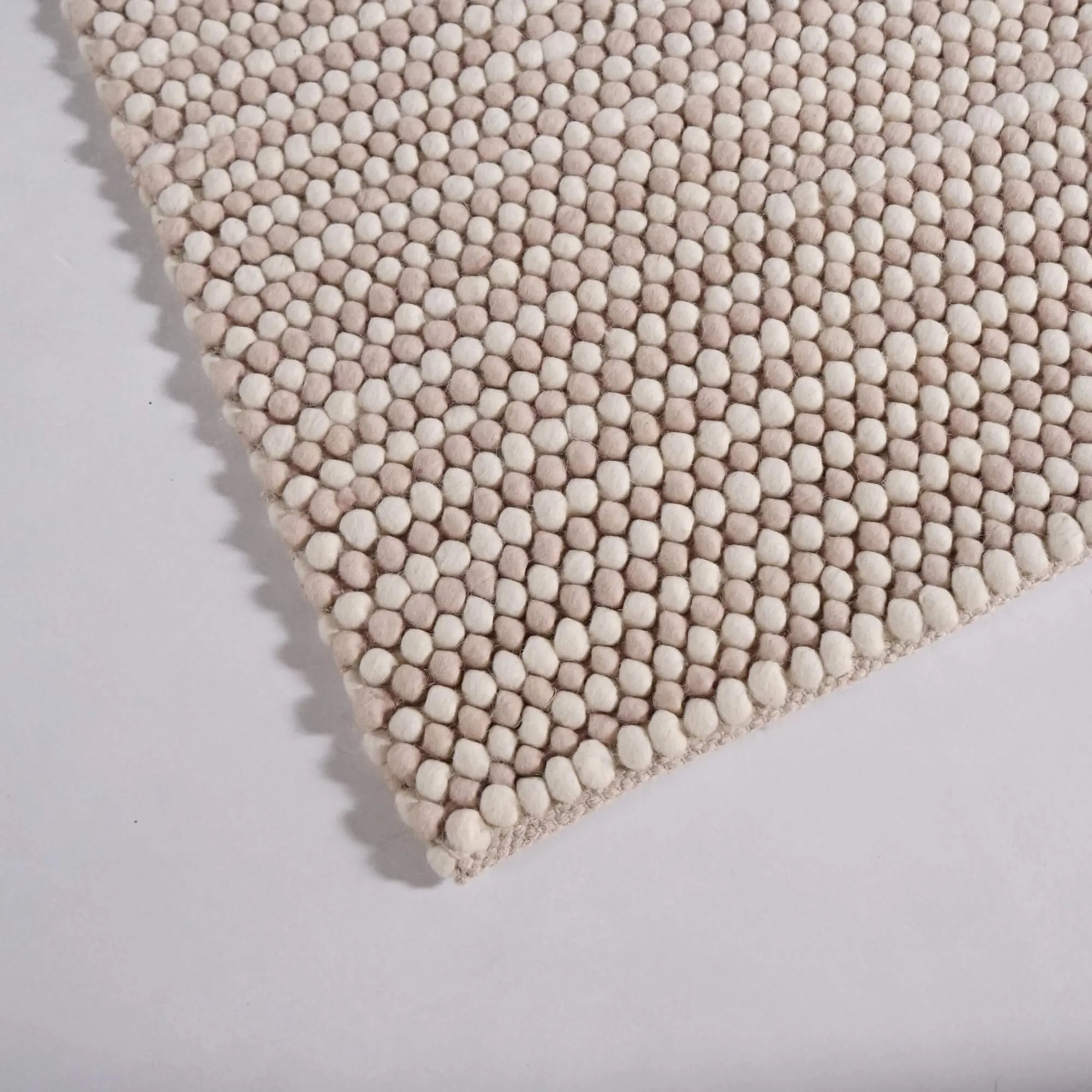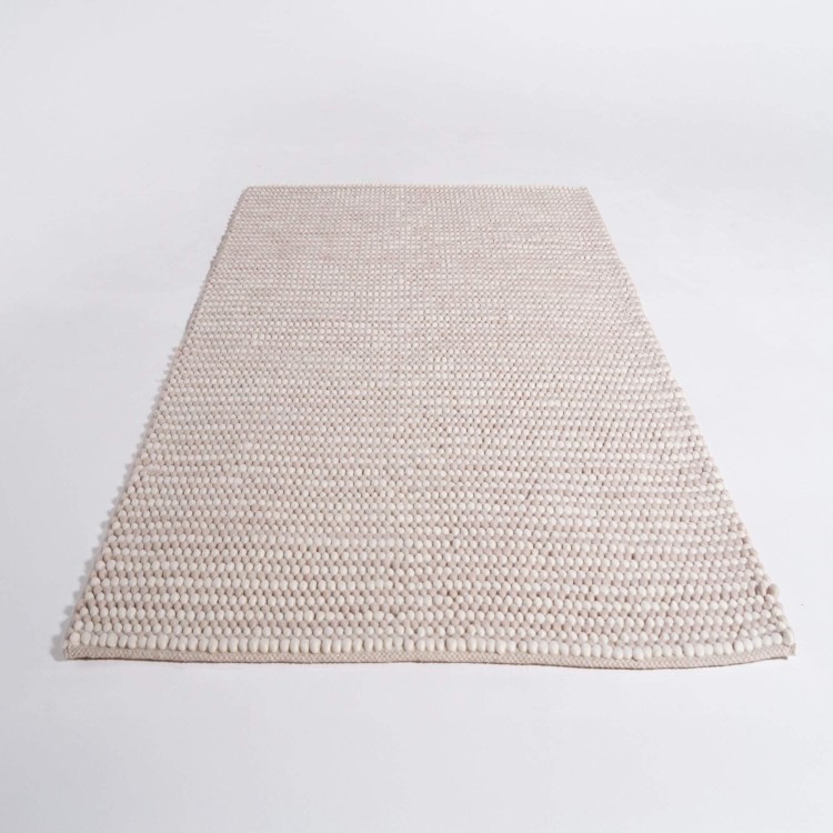 Unsere Kunsthandwerker weben jedes Stück von Hand – eine präzise Arbeit, die sich in der feinen, natürlichen Unregelmäßigkeit der Fäden, dem dezenten Relief des perlartigen Musters und dem weichen Gefühl unter den Füßen dieses handgewebten Wollteppichs zeigt. Diese traditionelle Fertigung ermöglicht eine angenehm komfortable Stärke (8 mm) – ideal, um eine leichte Silhouette zu bewahren und sich mühelos in moderne, Boho- oder skandinavische Interieurs einzufügen. Die 100 % natürliche Wolle dieses handgewebten Wollteppichs filtert das Licht und wärmt den Boden optisch, bleibt dabei aber atmungsaktiv und im Alltag langlebig.