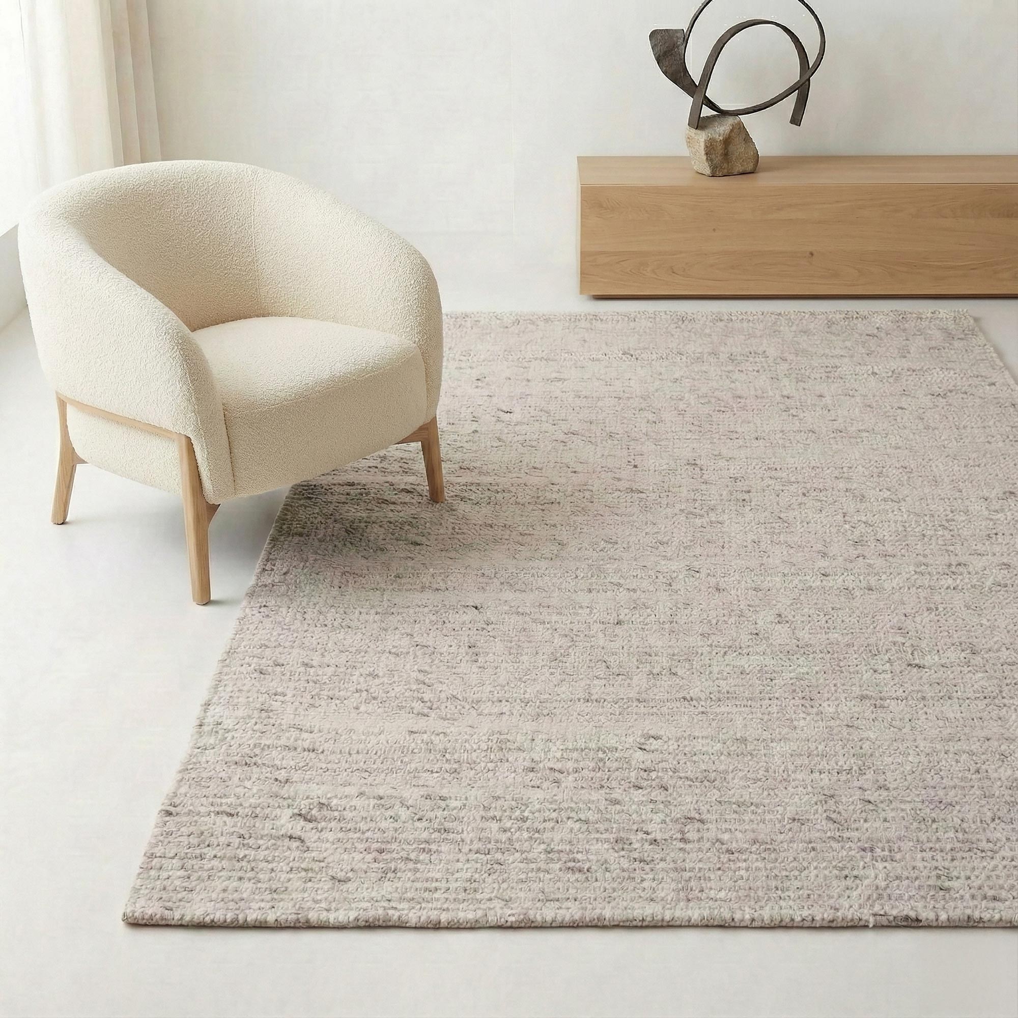 Den Abschlüssen dieses handgefertigten Wollteppichs haben wir besondere Aufmerksamkeit gewidmet, damit die Kanten klar bleiben und zugleich jene natürliche Ausstrahlung bewahren, die den Charme von Handarbeit ausmacht. So findet der Wollteppich Cairn seinen Platz sowohl in puristischen Einrichtungen als auch in wärmeren Ambientes, wo er harmonisch mit hellem Holz, natürlichen Textilien und klaren Möbellinien zusammenspielt.