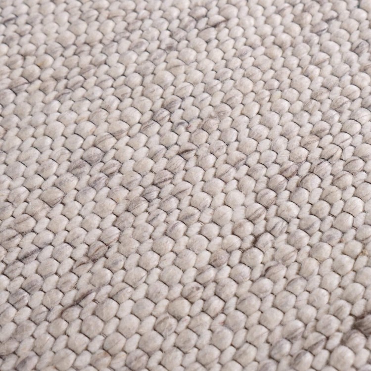 Vollständig von Hand gefertigt, wird unser Wollteppich Cairn aus Wolle (100 %) hergestellt – ausgewählt wegen ihrer natürlichen Widerstandsfähigkeit und ihrer authentischen Haptik. Die Webstruktur offenbart eine lebendige Oberfläche, durchzogen von fein nuancierten weiß-beige-Tönen, die das Licht aufnehmen und diesem handgefertigten Wollteppich eine beruhigende Präsenz verleihen. Diese niemals völlig gleichmäßige Tonigkeit macht jedes Stück einzigartig, geprägt durch die handwerkliche Geste. Mit einer Stärke von etwa 4 mm behält dieser handgefertigte Wollteppich eine schöne Formstabilität und bleibt zugleich dezent unter dem Möbel.