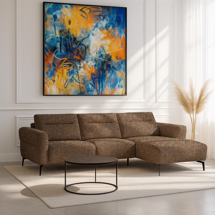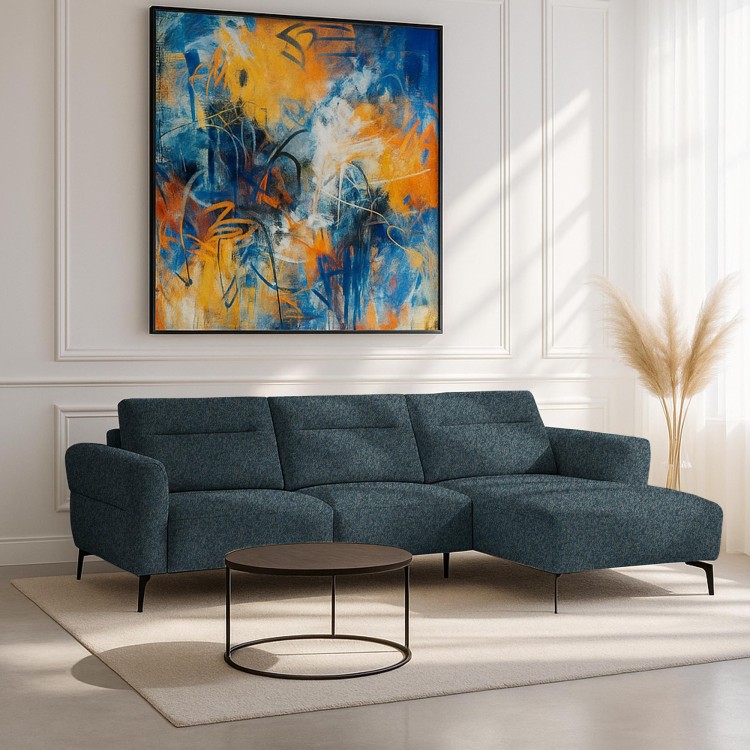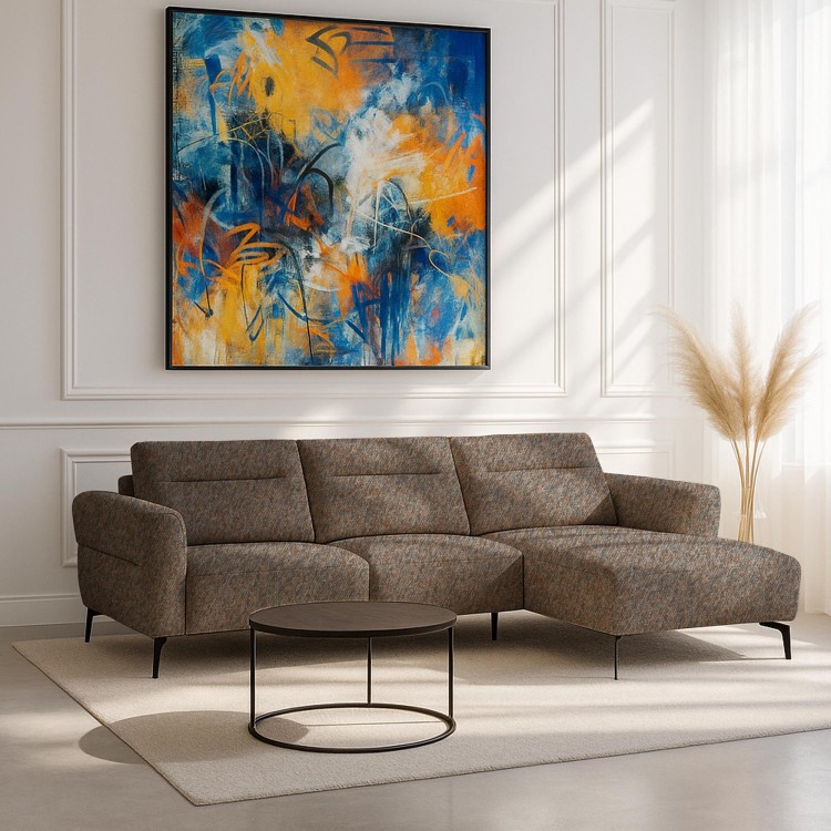 Unsere Designer haben dieses Ecksofa mit 4 Sitzplätzen und rechter Meridienne als ein zentrales Möbelstück entworfen, das Komfort und zeitgenössische Ästhetik vereint. Mit seinen weichen Linien und seiner modernen Ausstrahlung fügt es sich selbstverständlich in ein Wohnzimmer ein, in dem Eleganz und Geselligkeit zusammentreffen.