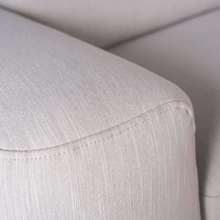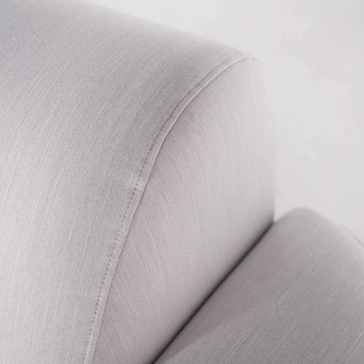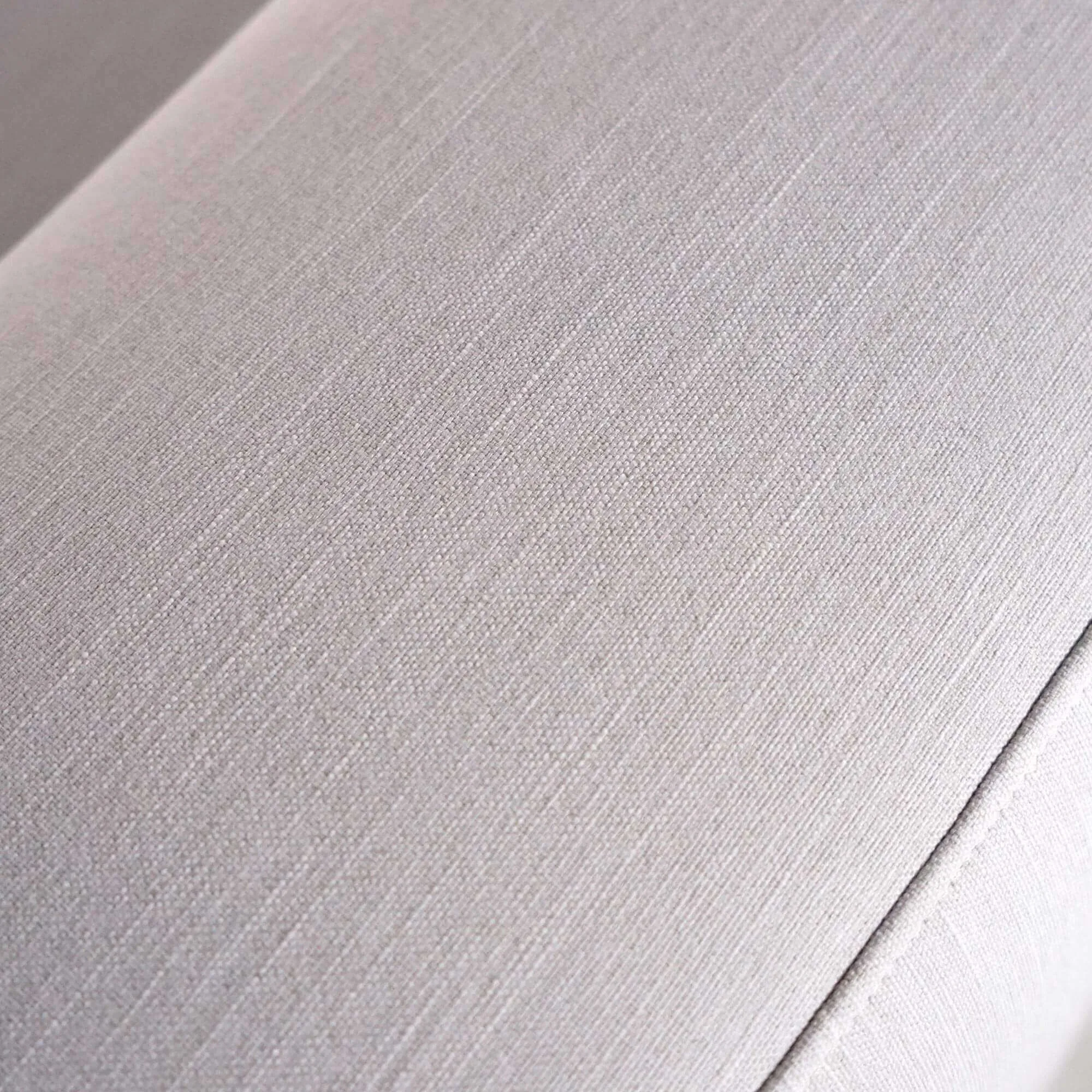 Der für dieses Ecksofa mit rechter Ottomane und 4 Sitzplätzen ausgewählte Stoff verleiht ihm eine natürliche Eleganz. Das dichte Gewebe, das über 70.000 Martindale-Zyklen standhält, ist weich im Griff und auf Langlebigkeit ausgelegt. Seine wasserabweisende Oberfläche erleichtert die Pflege, da sie Flüssigkeiten und leichte Flecken abweist, während die Einhaltung der europäischen Brandschutznormen ihn zu einer sicheren und zuverlässigen Wahl macht. Der leicht strukturierte Stoff fängt das Licht sanft ein und verstärkt das visuelle und haptische Komfortgefühl.