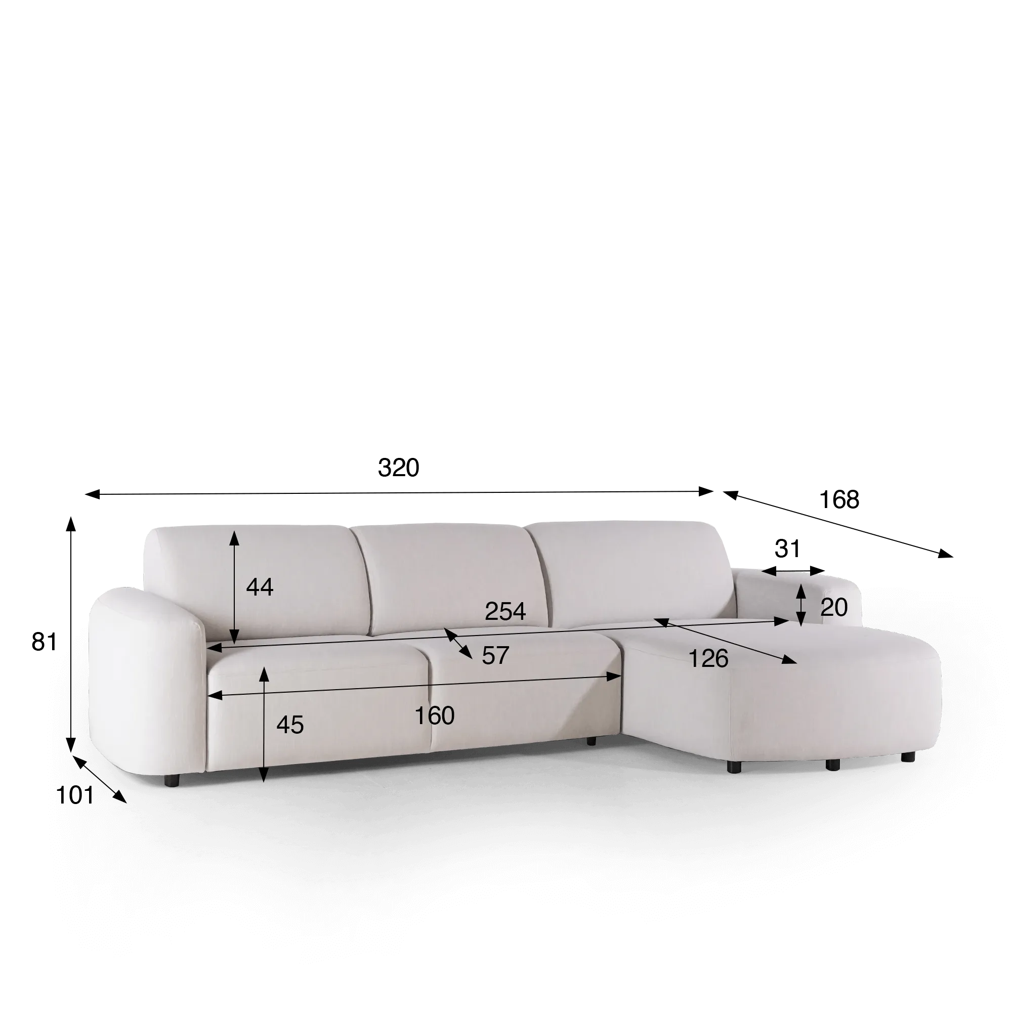 Ecksofa 4-Sitzer mit rechter Ottomane – Kala Ecksofa 4-Sitzer mit rechter Ottomane – Kala 320 x 168 x 81 cm