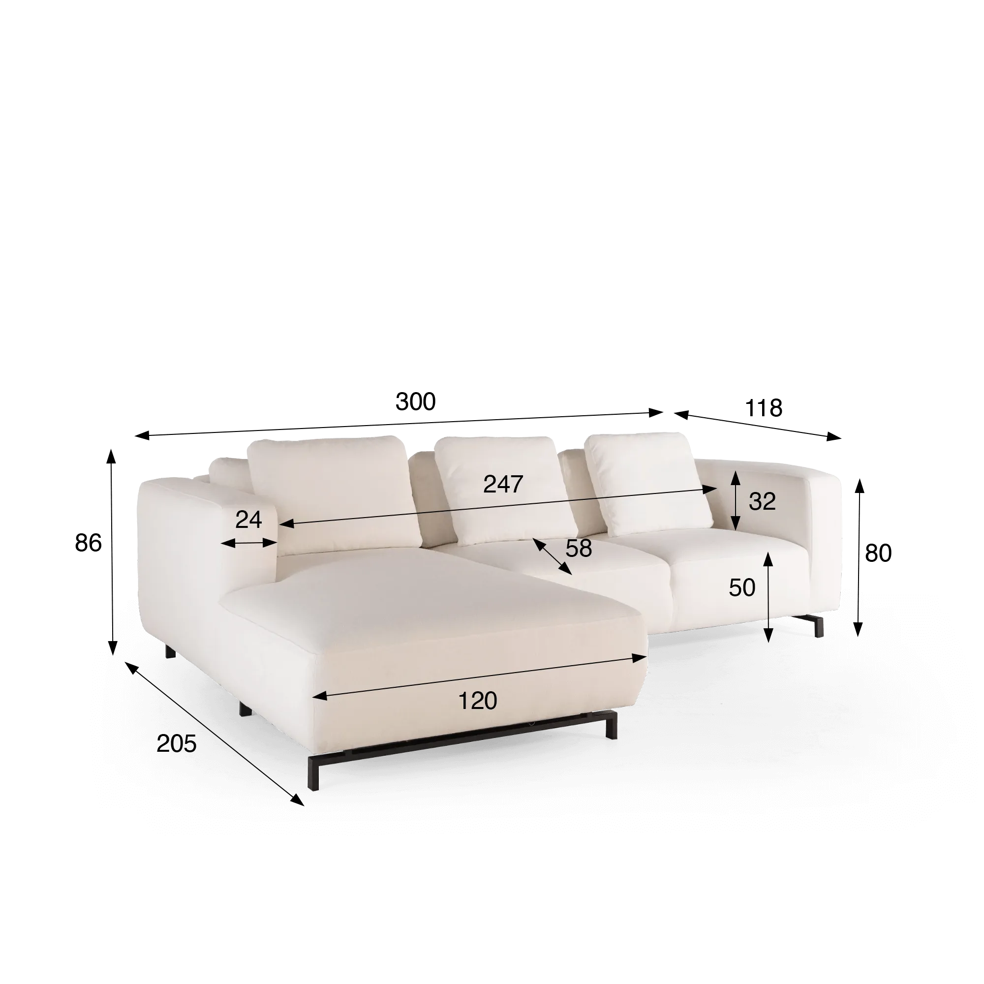 Ecksofa 4-Sitzer mit linker Ottomane – Miro 300 x 205 x 86 cm