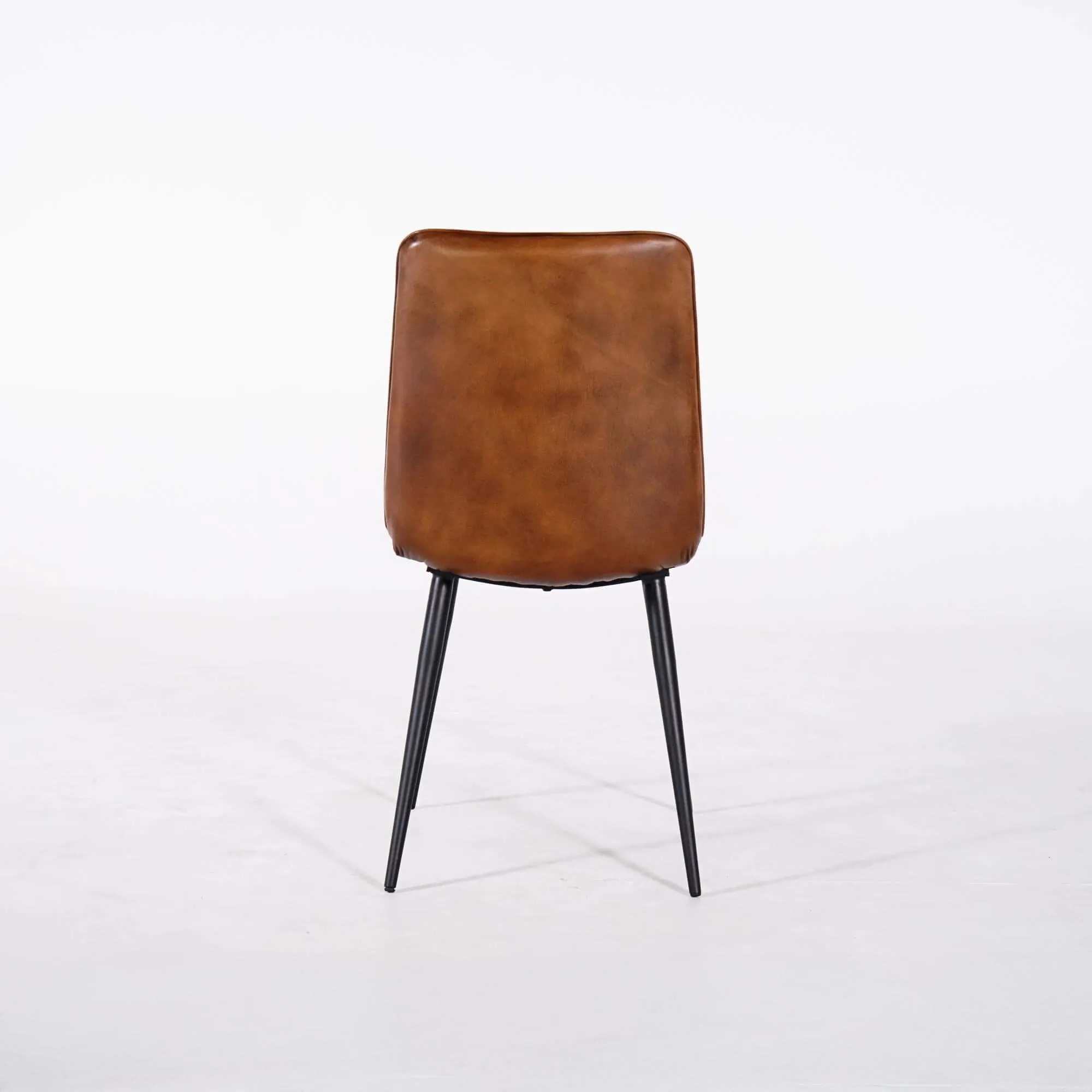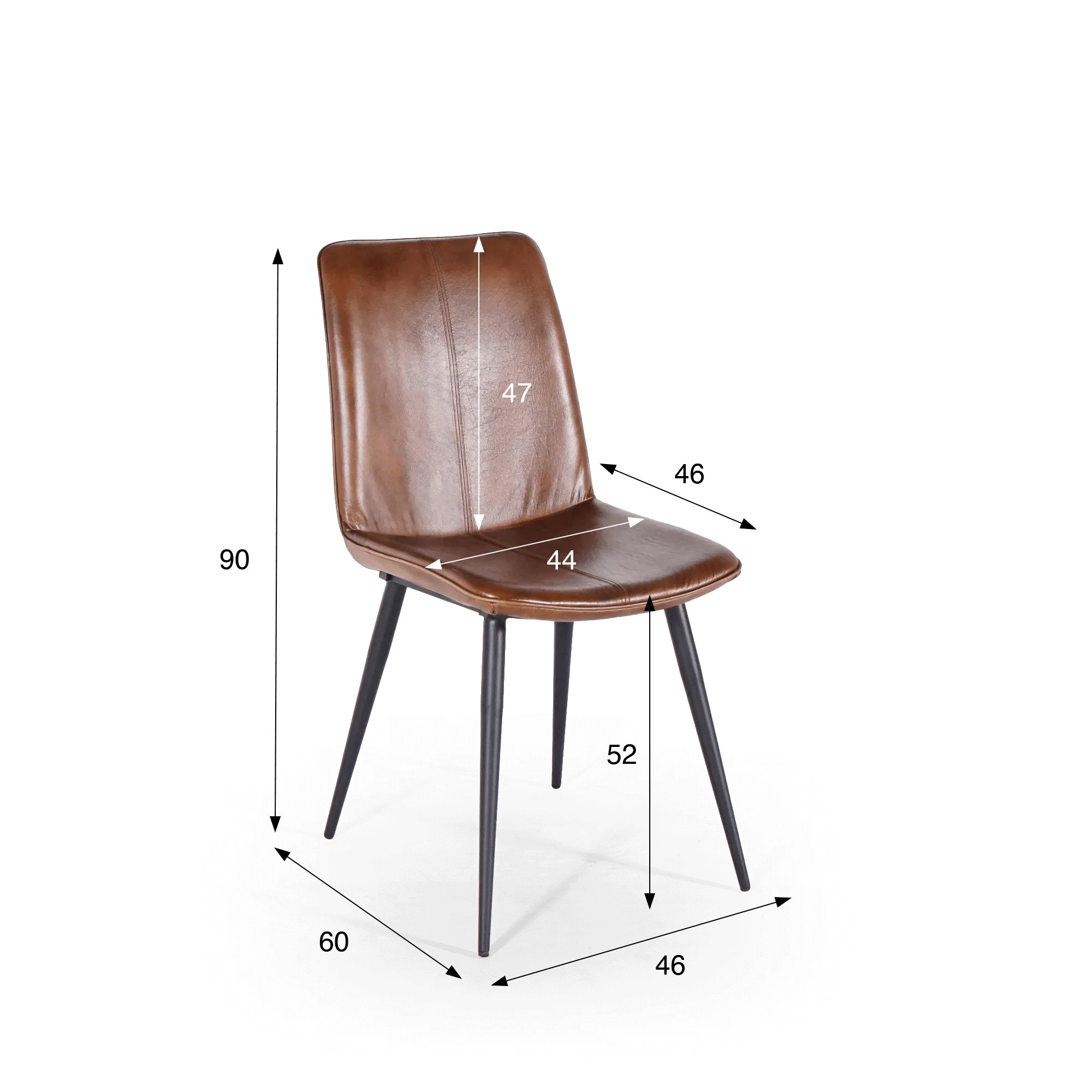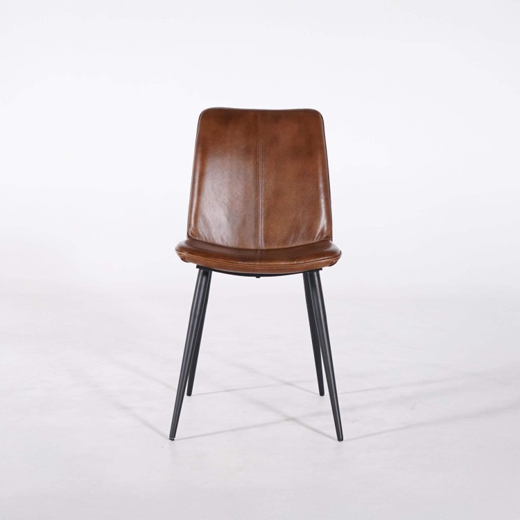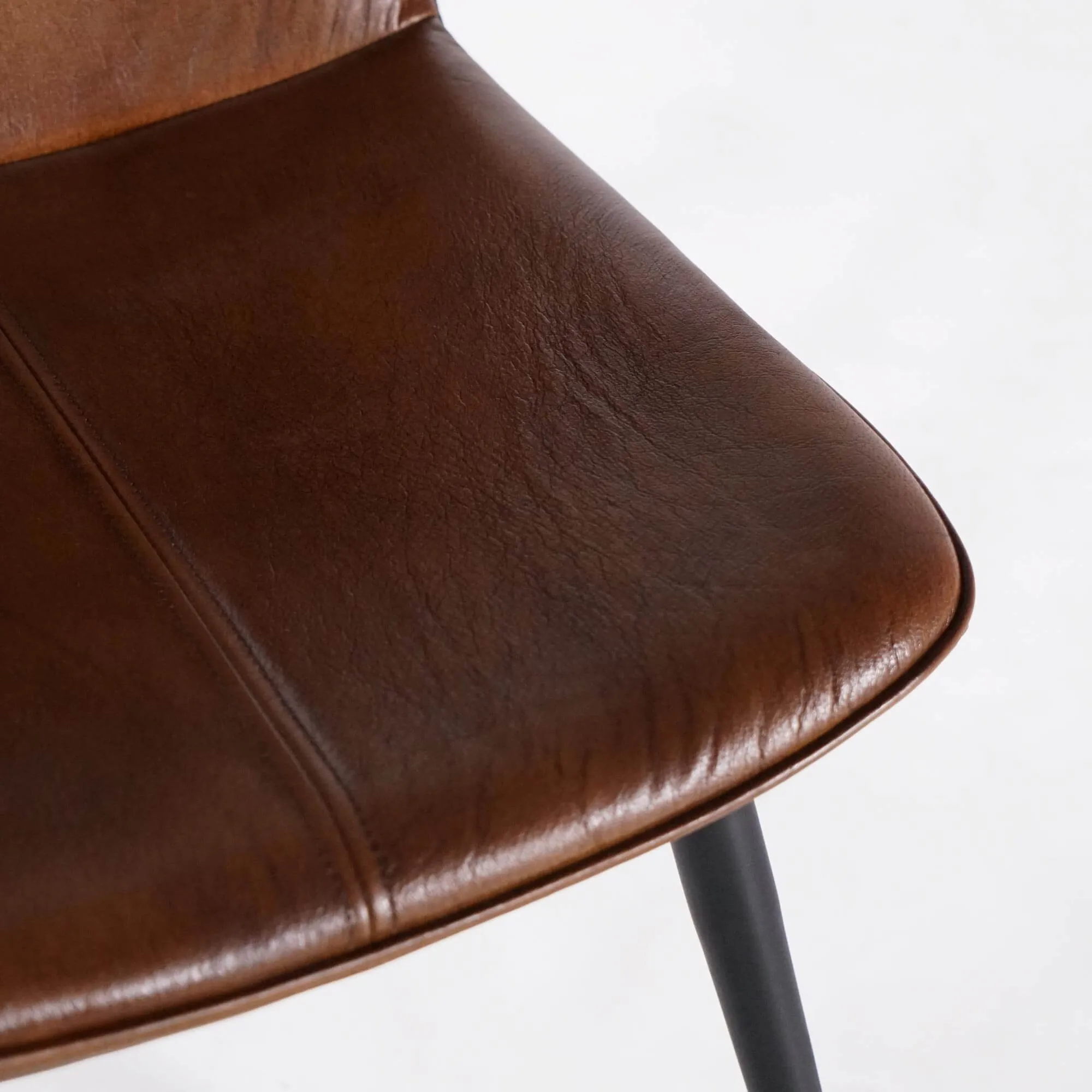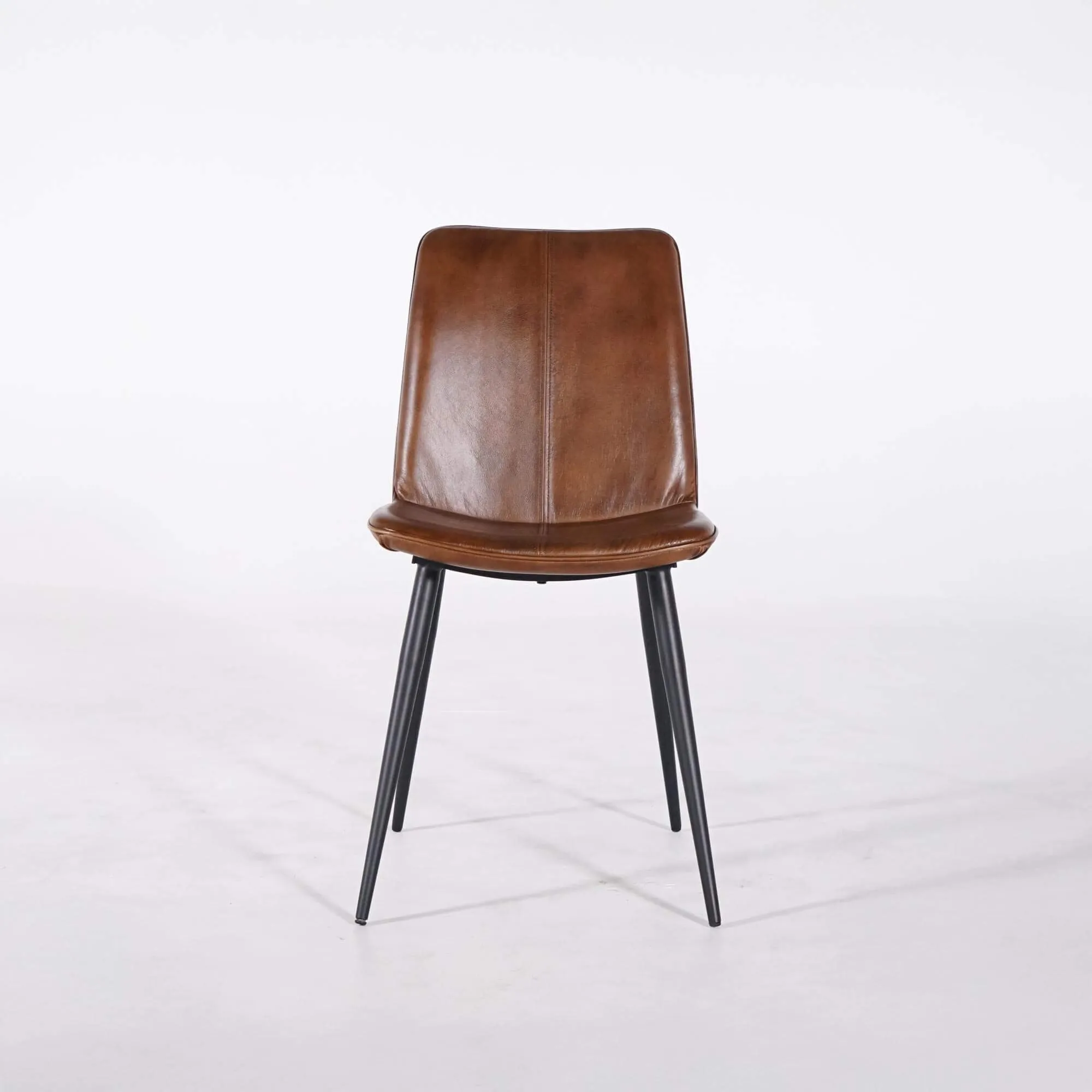 Für das Gestell haben wir schwarzes Metall mit feinen Linien gewählt, um einen ausgewogenen Kontrast zur Wärme des Leders zu schaffen und zugleich Stabilität sowie Langlebigkeit zu gewährleisten. Mit einer Gesamthöhe von ca. 90 cm und einer Gesamttiefe von etwa 60 cm lässt sich der braune Vintage-Lederstuhl Dock mühelos um einen Tisch platzieren, ohne den Raum optisch zu beschweren.