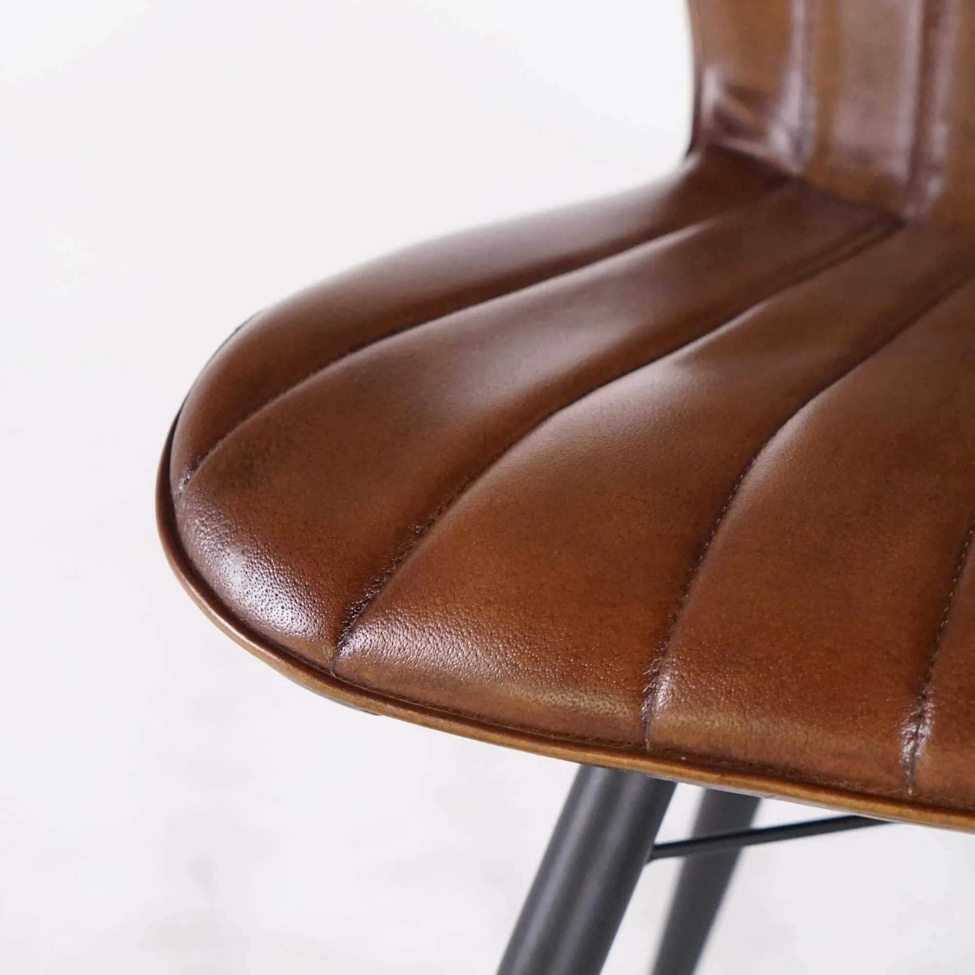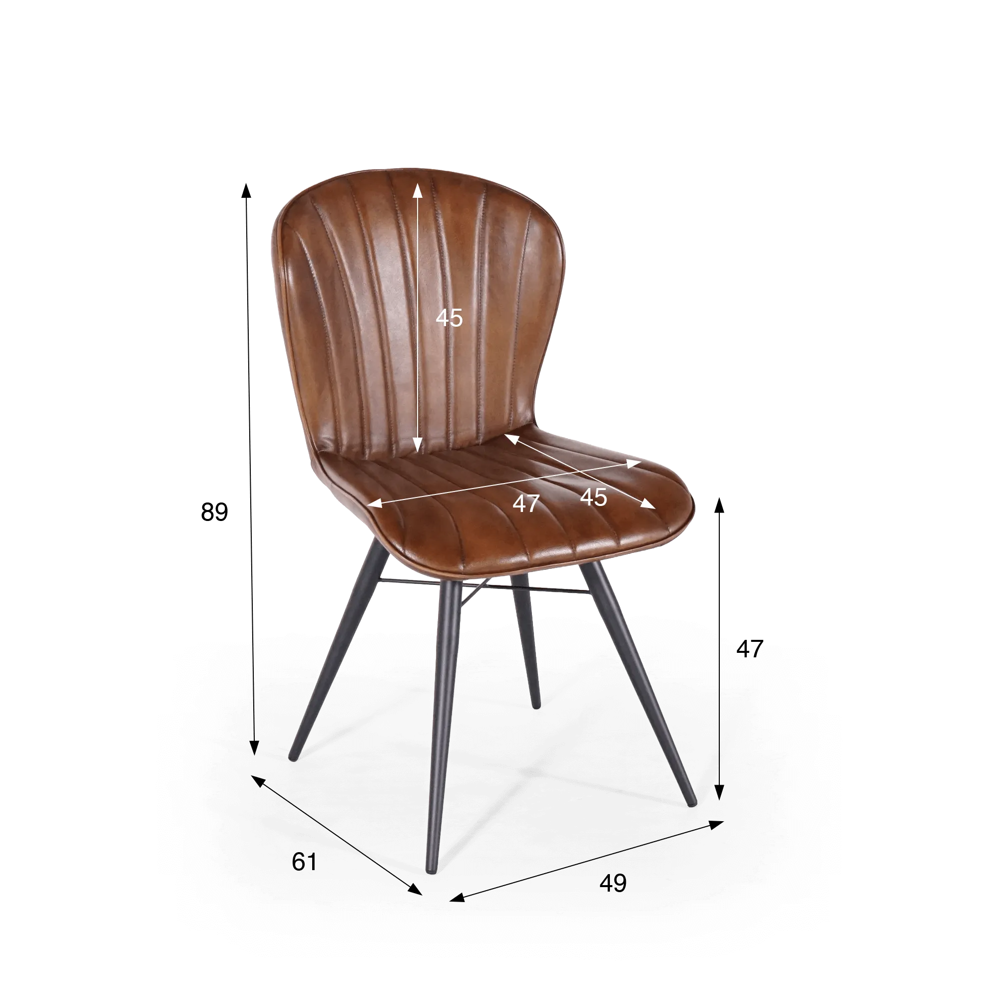 Bei diesem Vintage-Stuhl aus Echtleder folgen die vertikalen Ziernähte auf natürliche Weise der Krümmung der Rückenlehne und stützen den Rücken präzise. Mit einer Gesamthöhe von ca. 89 cm und einer Sitzhöhe von rund 47 cm lässt sich der Stuhl problemlos unter die meisten Standardtische schieben. Die großzügige Sitzfläche – ca. 47 cm breit und 45 cm nutzbare Sitztiefe – sorgt für hohen Komfort bei langen Mahlzeiten oder spontanen Arbeitseinheiten zu Hause. Die Innenkonstruktion und die Polsterung aus hochresilientem Polyurethanschaum dieses Vintage-Stuhls aus Echtleder gewährleisten dauerhaften Halt ohne übermäßige Steifigkeit.