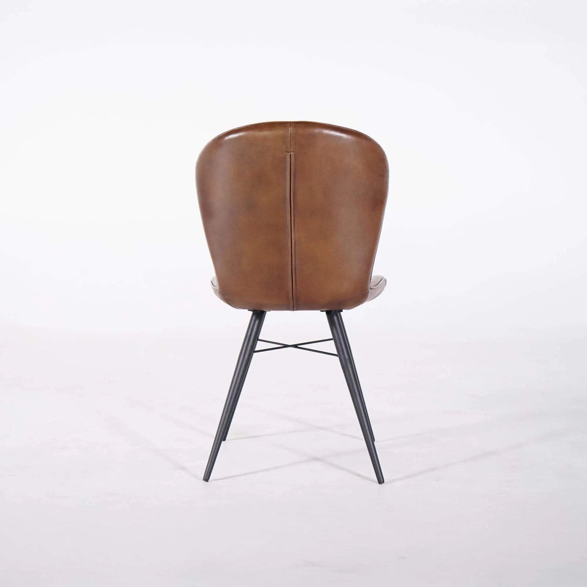 In Kombination mit unseren Esstischen aus Massivholz entsteht ganz natürlich ein harmonisches, warmes Ensemble – ganz im Sinne des Charakters, den wir diesem Modell des Vintage-Stuhls aus Echtleder mitgegeben haben.
