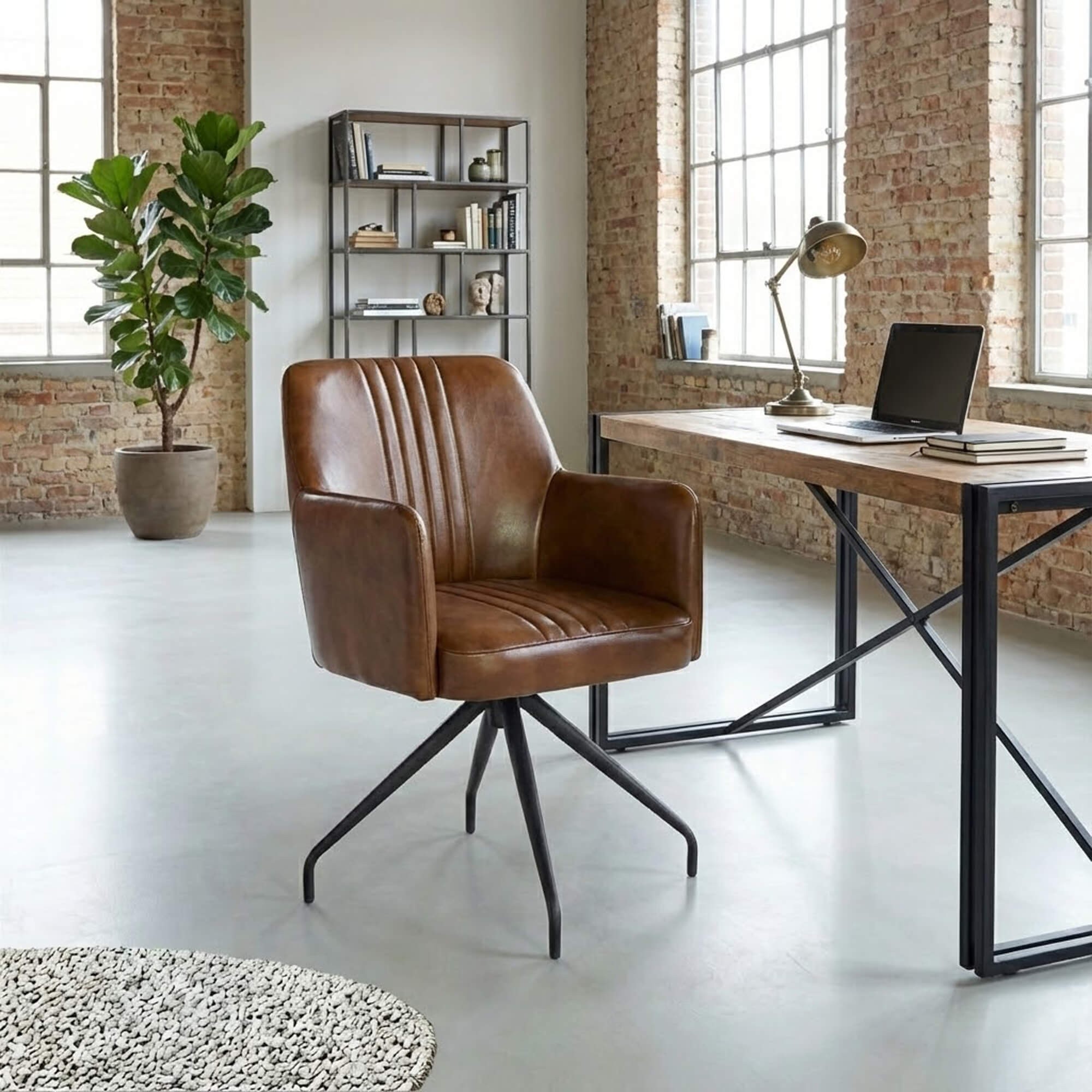 Für eine harmonische Atmosphäre kombinieren Sie diesen Lederstuhl mit unseren Schreibtischen aus Massivholz und unseren Wollteppichen: Die Materialien greifen ineinander, und das Gesamtbild gewinnt an stimmiger Kohärenz.