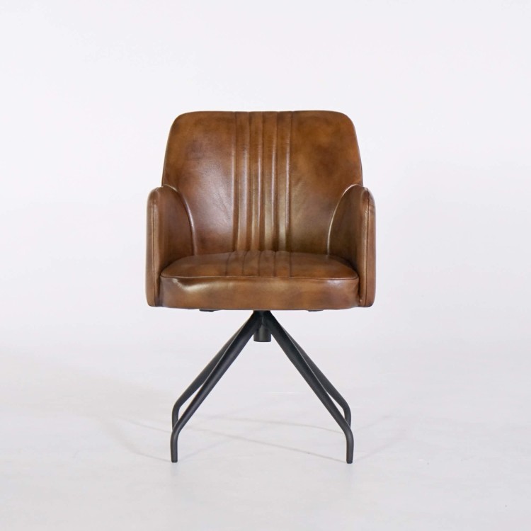 Stuhl aus Echtleder mit Metallfuß – Edison
