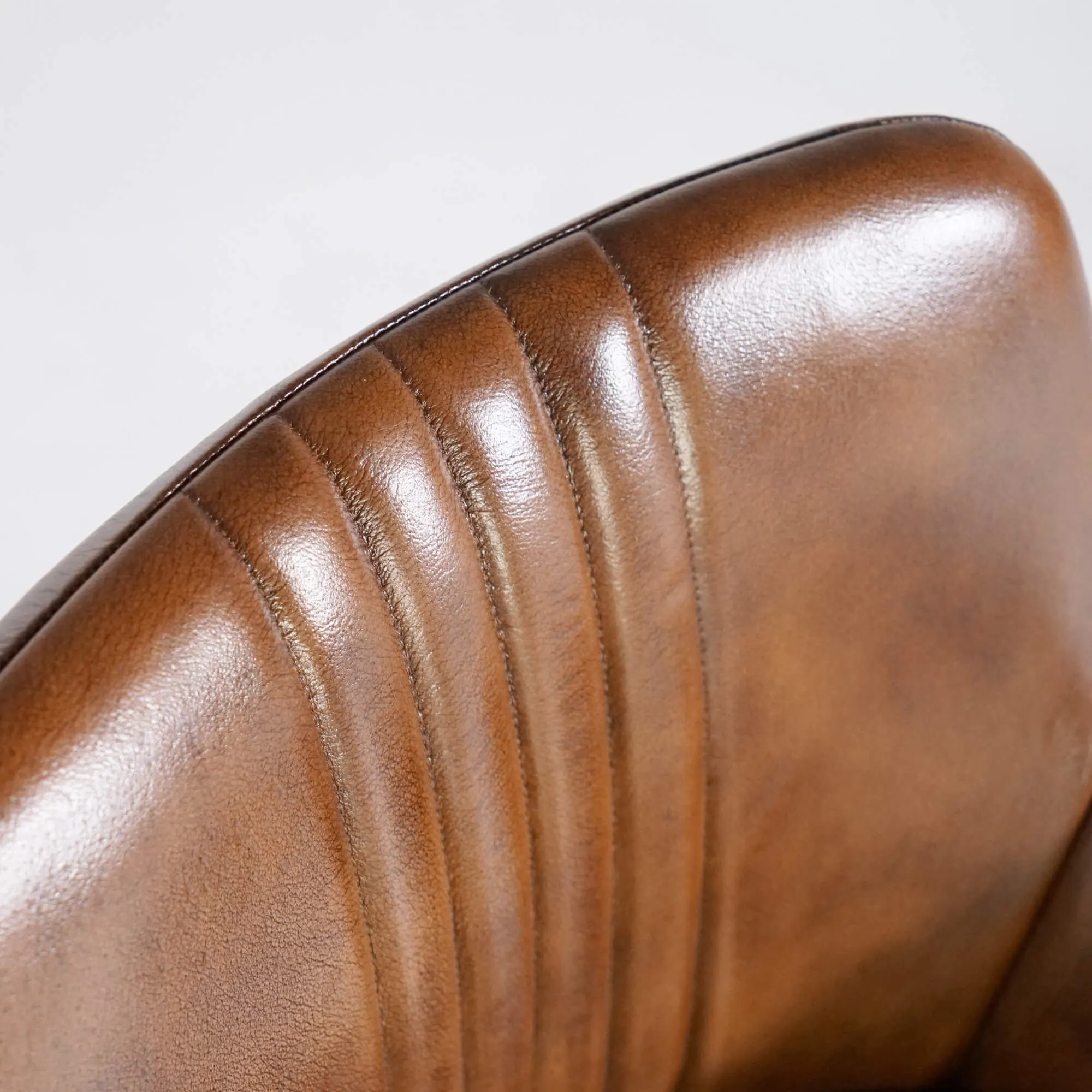 Mit dem Edison Stuhl aus echtem Leder wollten unsere Designer den unverfälschten Komfort und die beruhigende Präsenz klassischer Bürofauteuils wieder aufgreifen – und zugleich für heutige Interieurs neu interpretieren. Die leicht umschließende Rückenlehne dieses Lederstuhls, rhythmisiert durch feine vertikale Nähte, fängt das Licht ein und betont die natürliche Patina des Leders. Dieses warme, nuancierte Braun wirkt sofort angenehm „gelebt“ – ohne jemals an Präzision in der Verarbeitung zu verlieren.